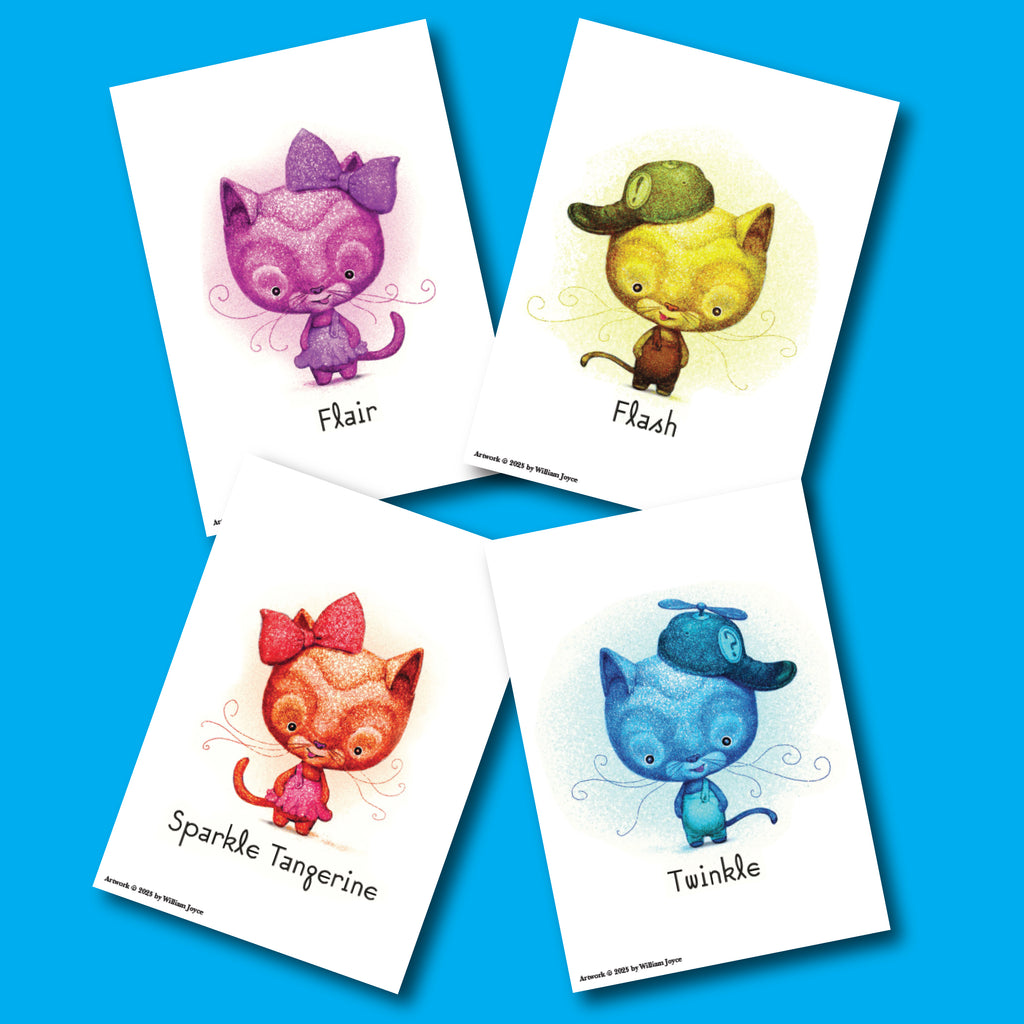 Flash, Flare, Twinkle, and Sparkle Tangerine are the most glimmery, glitzy, fabulous kittens ever, and they love nothing more than talking about their favorite thing: themselves. Their best best friends get fed up with the bragging and come up with a plan: a game of hide-and-seek where the glittery felines hide and everyone else counts to one million and three. Then, as the kittens hide in a cave, the shimmer-free friends conveniently forget to count.
