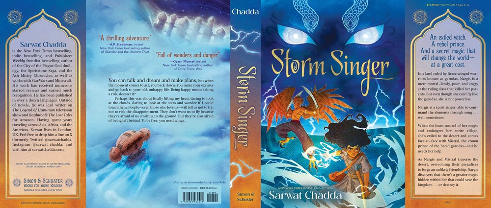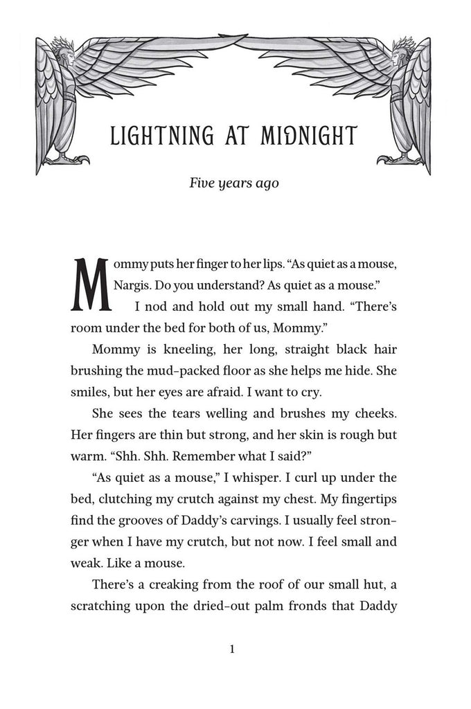 In a land ruled by fierce winged warriors known as eagle garudas, twelve-year-old Nargis is just a poor, lowly human, a Worm who hates the garudas that killed her parents. But even though she can’t fly—and her childhood attempt left her walking with a crutch—she is far from powerless. Nargis is a spirit singer: able to coax small bits of wind, water, fire, and earth to do her bidding through song…well, sometimes.