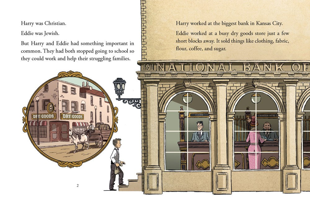 Harry and Eddie were unlikely friends. Harry was 19. Eddie was 14. Harry lived on a farm with chickens, cows, and horses. Eddie never even had a pet! Harry was Christian. Eddie was Jewish. But they worked together very well. They operated an army shop in their hometown and later founded a hat shop together.
