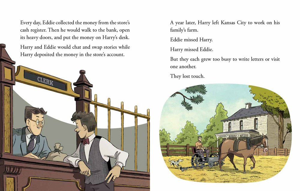 Even when they didn't work together, they remained friends. They wrote letters all the time. Harry went into politics, eventually becoming the President of the United States! Eddie was a salesman in Kansas City. Harry would shop in Eddie's store, and Eddie would visit the White House. Even though people like Harry's wife, Bess, didn't think Jewish people should interact with the upper classes, Harry never left his friend.