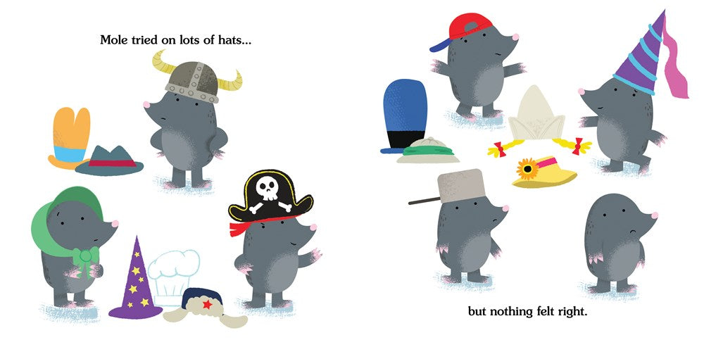 Journey alongside an adorable mole as he struggles to find the perfect hat in this delightful picture book debut