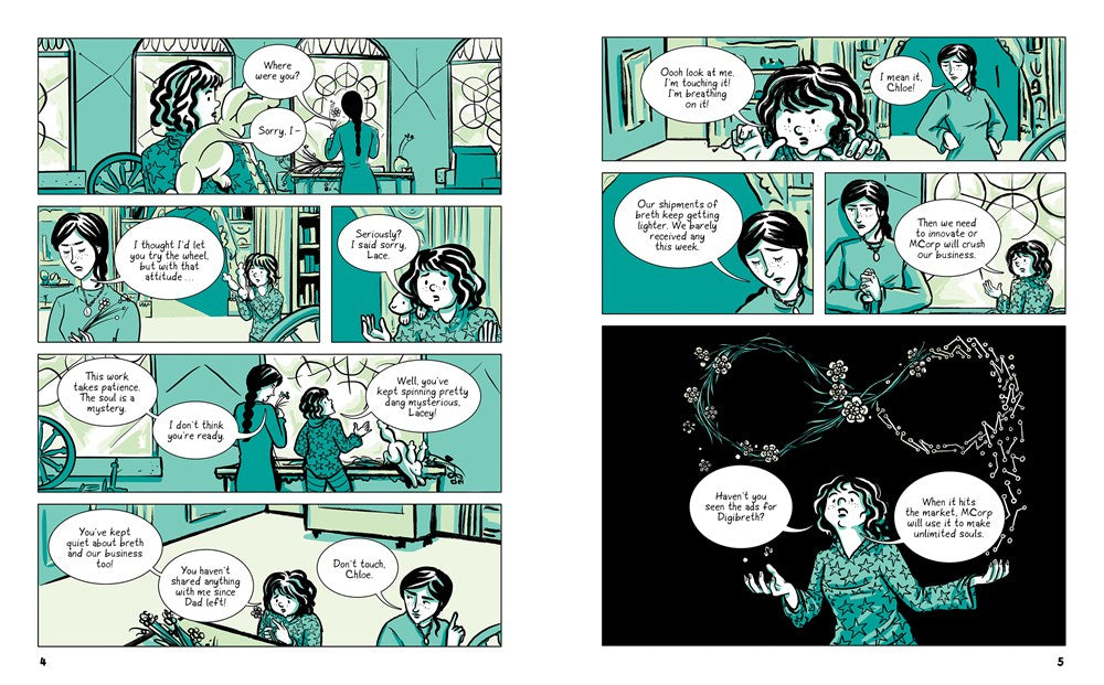 Chloe and her older sister make souls by hand in an empty old house in the countryside. When their supply of breth—the raw material needed to make souls—runs dry, the evil McCorp tries to force them to franchise and make synthetic souls instead. Chloe sets out to the big city in hopes of finding a new source. And maybe a way to modernize their business that Lacey is so determined to keep in the past.