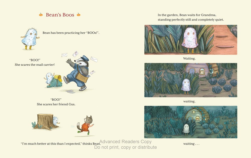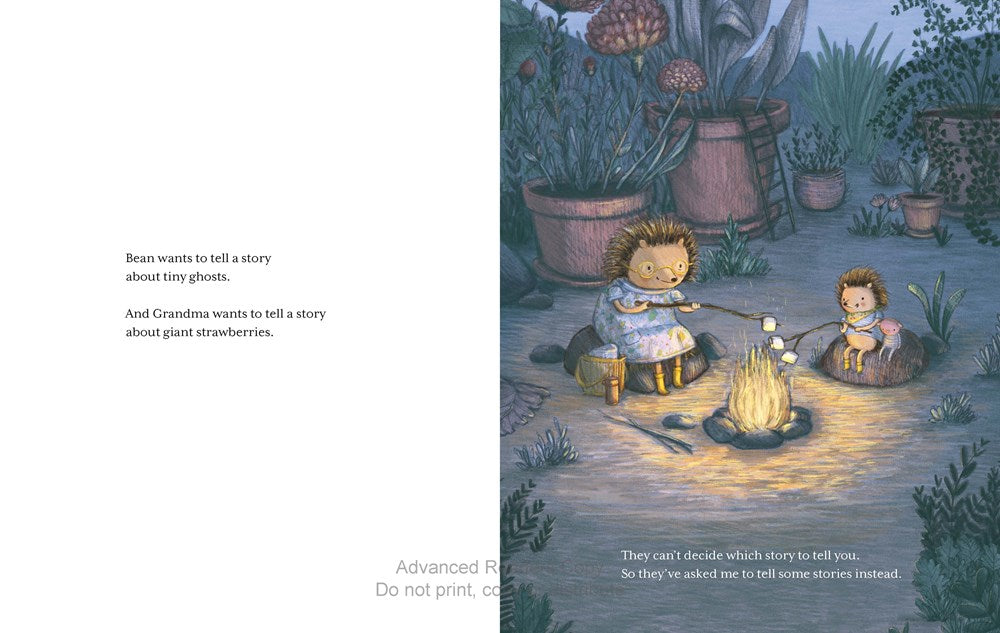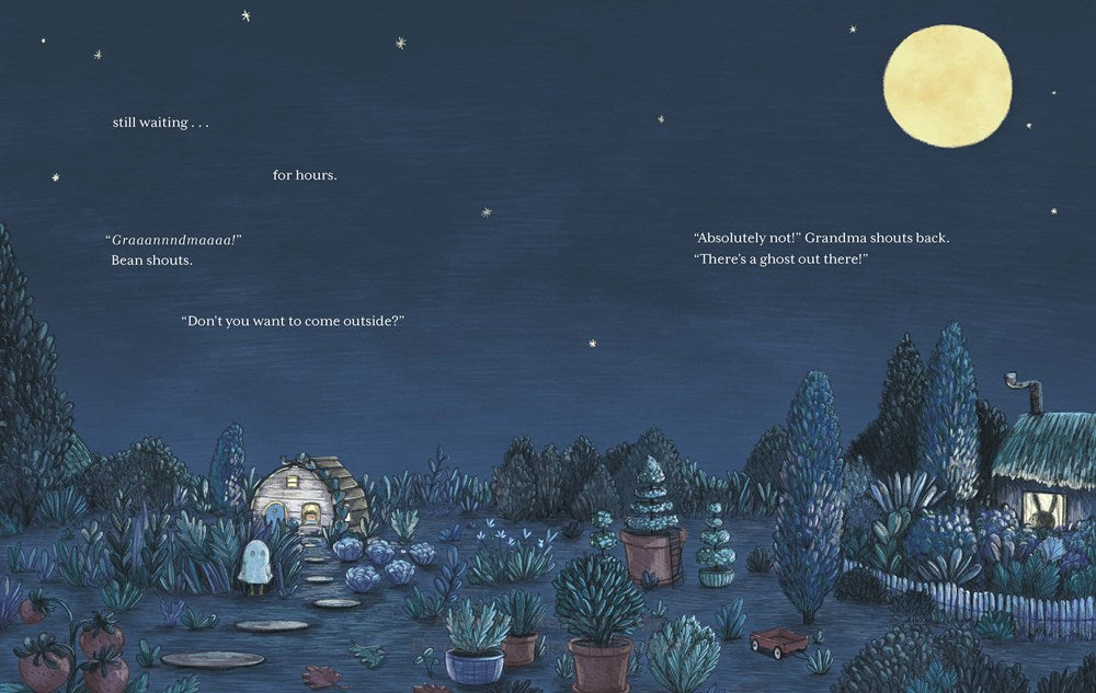 In ten tiny stories we follow Bean and her grandmother through adventures of the everyday. Bean loses her bad mood in a meadow and Grandma thinks she sees a ghost (don’t worry it’s just Bean!) — and there’s even a story with giant strawberries.