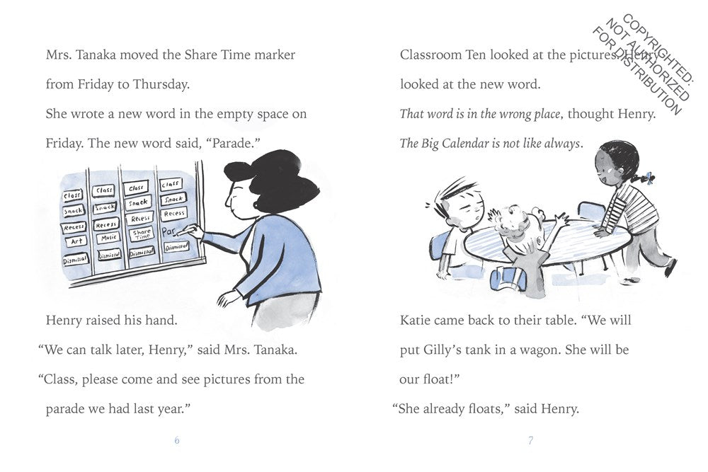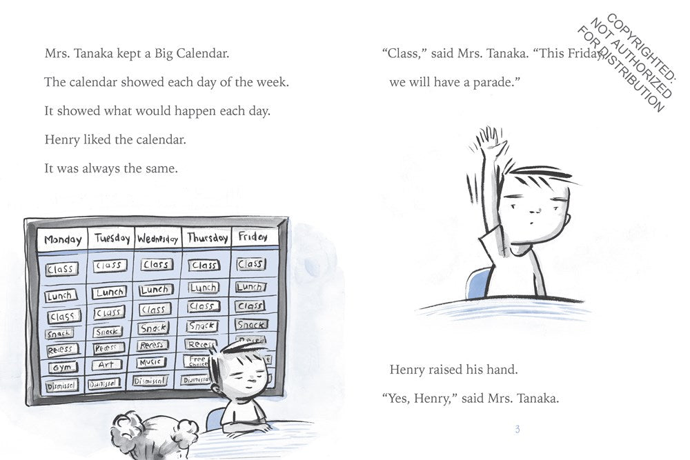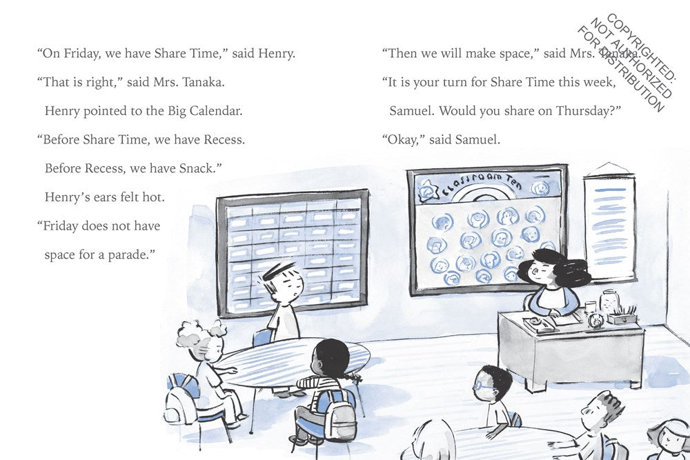 Henry likes Classroom Ten. He likes how it is always the same. But this week, Henry's class will have a parade, and a parade means having Share Time on the wrong day. A parade means playing instruments that are too loud. A parade means this week is not like always.