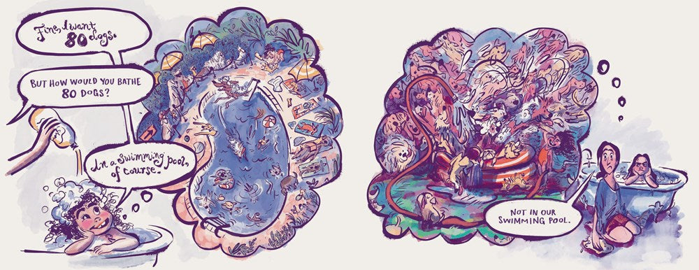 In this funny, feel-good first-pet book, one aspiring dog owner and her parents ponder—in wildly imaginative and hilarious detail—all the best and worst outcomes of bringing home more dogs than you can (literally) shake a stick at.