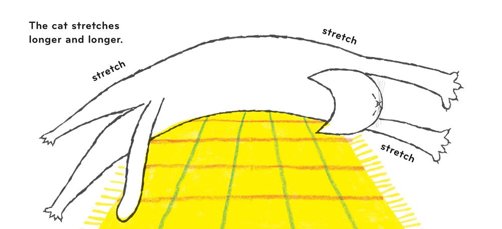 Purr and play the day away with a new feline friend! This adorable board book is a celebration of all things cat. Each whimsical spread invites the littlest readers to experience a day in the life of a house cat, encouraging opportunities to imitate feline behaviors and reflect on the rhythms of their own days—from stretching to playing to eating, and more!
