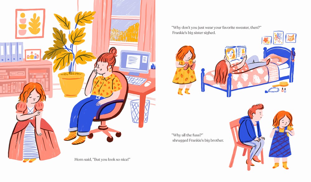 It’s almost Frankie’s birthday and everything is ready — except for something to wear. All of her party dresses feel wrong. Her family tries to help, but it’s no good.