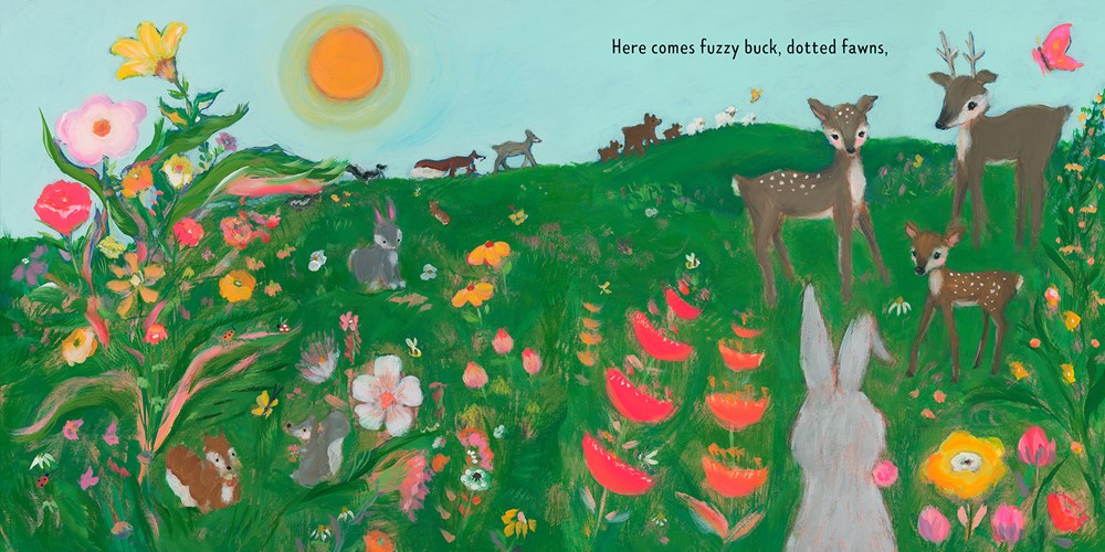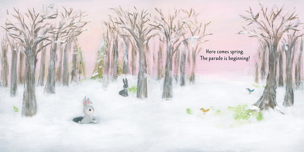 Here comes Spring! March along with Mama and Baby Bunny as they welcome a festive parade of budding flowers and blossoming trees, new birds, butterflies and bees, and all of their beloved friends, emerging from the winter season.