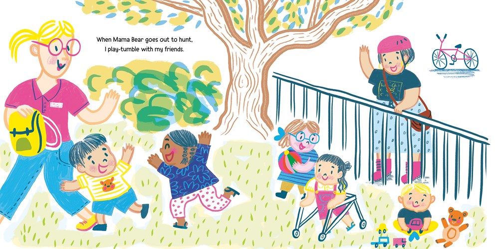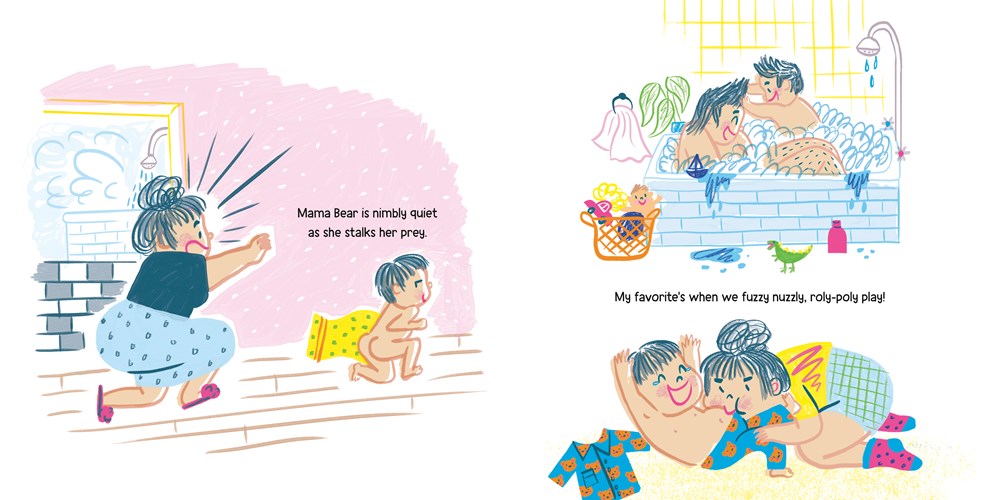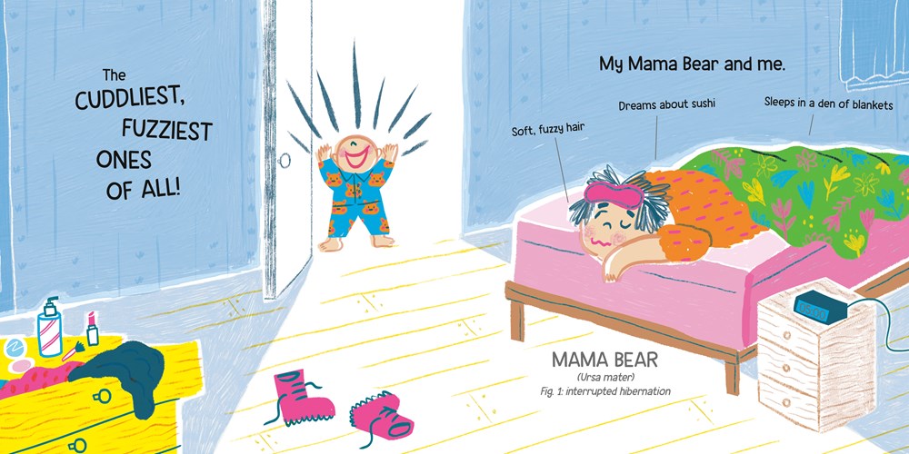 A bear hug from my mama is the warmest place to be. . . . This rhyming board book follows a day in the life of a child and their loving mama bear, from a honey-filled breakfast, to tumbling with their friends at preschool while mama bear “hunts” at work, to bedtime in their warm, cozy den of blankets. With bear-y funny metaphors and tender moments sprinkled throughout, My Mama Bear and Me is an empowering ode to anyone who is or has a protective mama bear figure in their life.