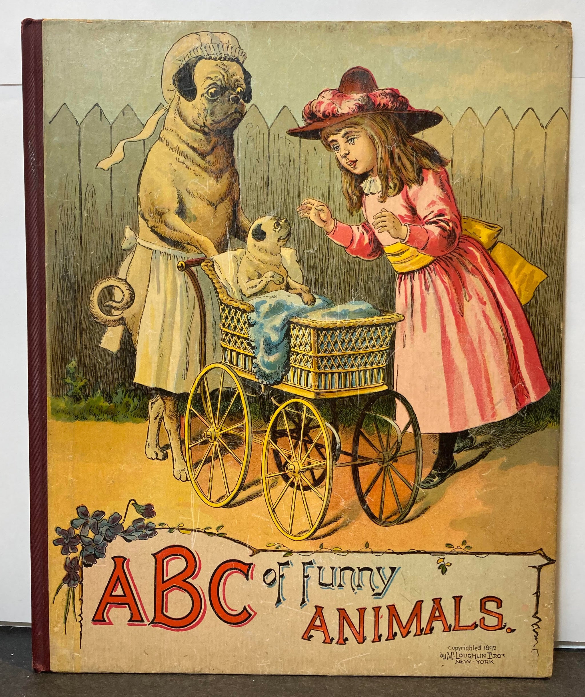 [McLOUGHLIN BROTHERS]. ABC of Funny Animals. NY: McLoughlin Brothers (ca. 1895). 4to, [8]pp. Maroon cloth spine with color pictorial boards. Color illustrations on every page. Edges a bit worn, front cover a tad scratched, else an internally clean, bright copy.