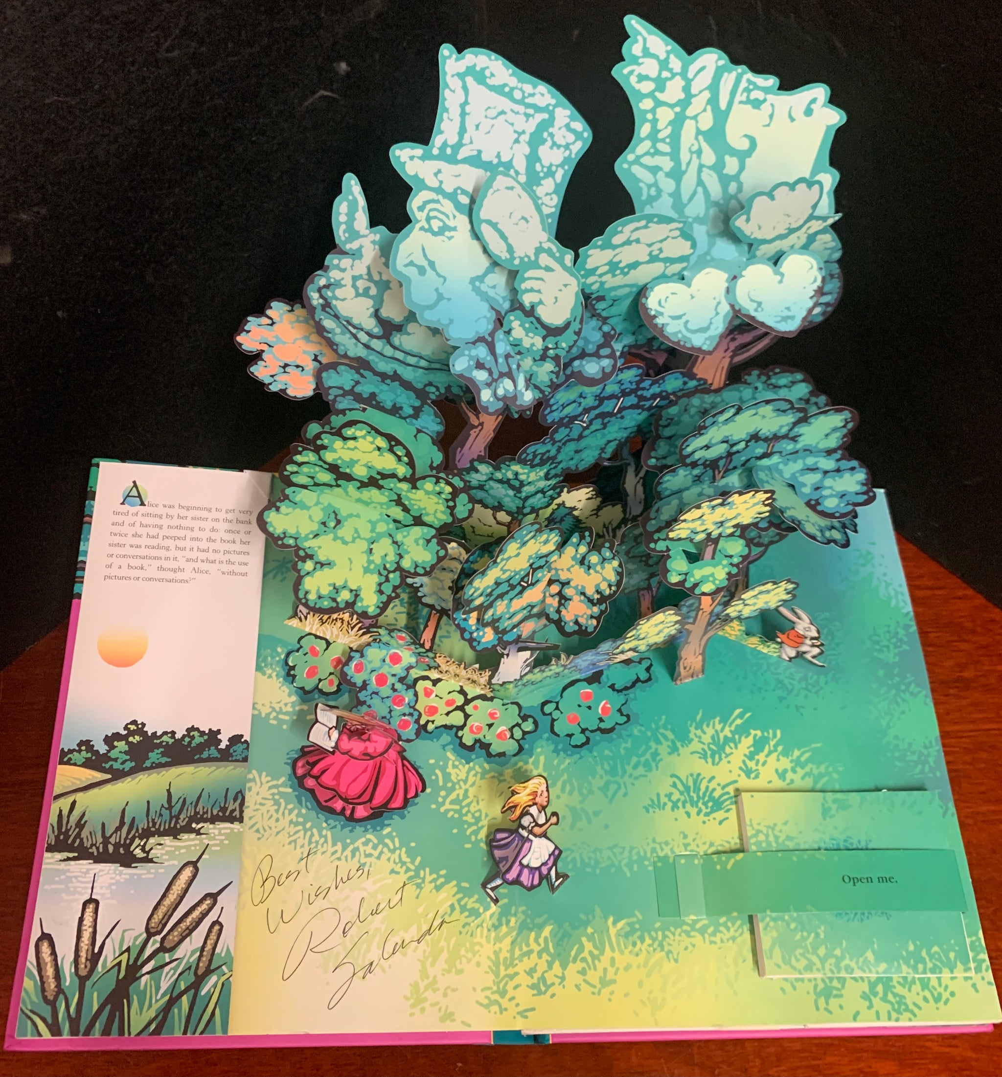 [SABUDA, Robert]. Alice’s Adventures in Wonderland. [NY: Little Simon, 2003]. 8vo, [12]pp. Color pictorial boards. Color pop-up illustrations on every page with multiple fold-out flaps containing color pop-up illustrations. A fine copy in original resealable plastic wrapper with original promotional sheet laid-in. Signed by the artist/pop-up engineer, Robert Sabuda.