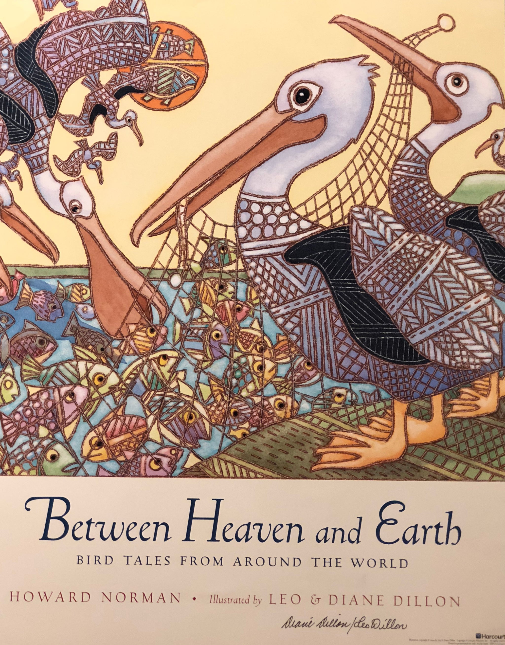 Promotional poster created to celebrate the 2004 publication of Between Heaven & Earth by Howard Norman, illustrated by Diane & Leo Dillon.
