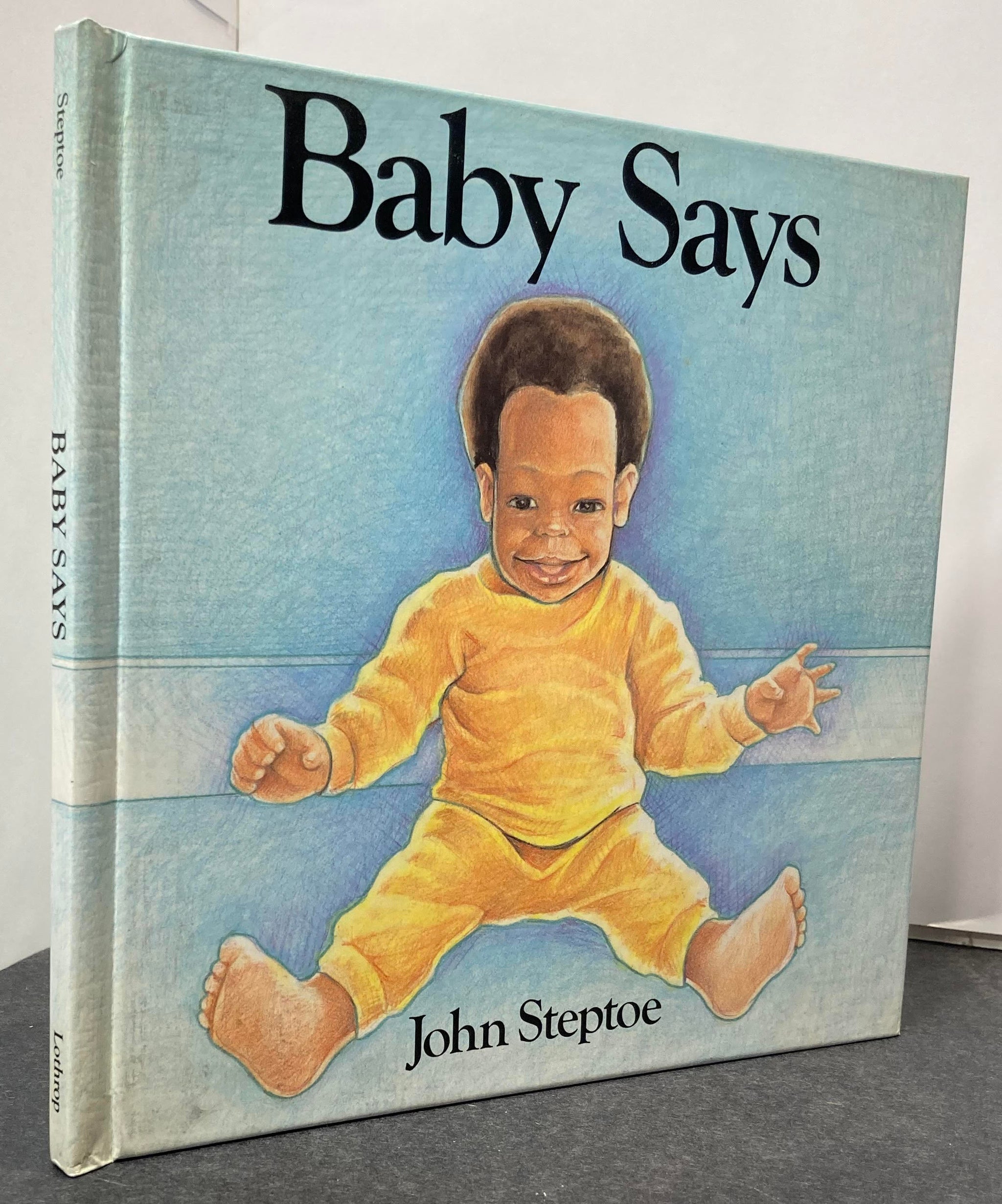 STEPTOE, John. Baby Says. [NY: Lothrop, Lee & Shepard, 1988]. Oblong 8vo, [24]pp. Color pictorial boards. Color illustrations on nearly every page. A fine copy in original color pictorial dust jacket. Signed by the author, Caldecott Honor artist John Steptoe. Rare thus.