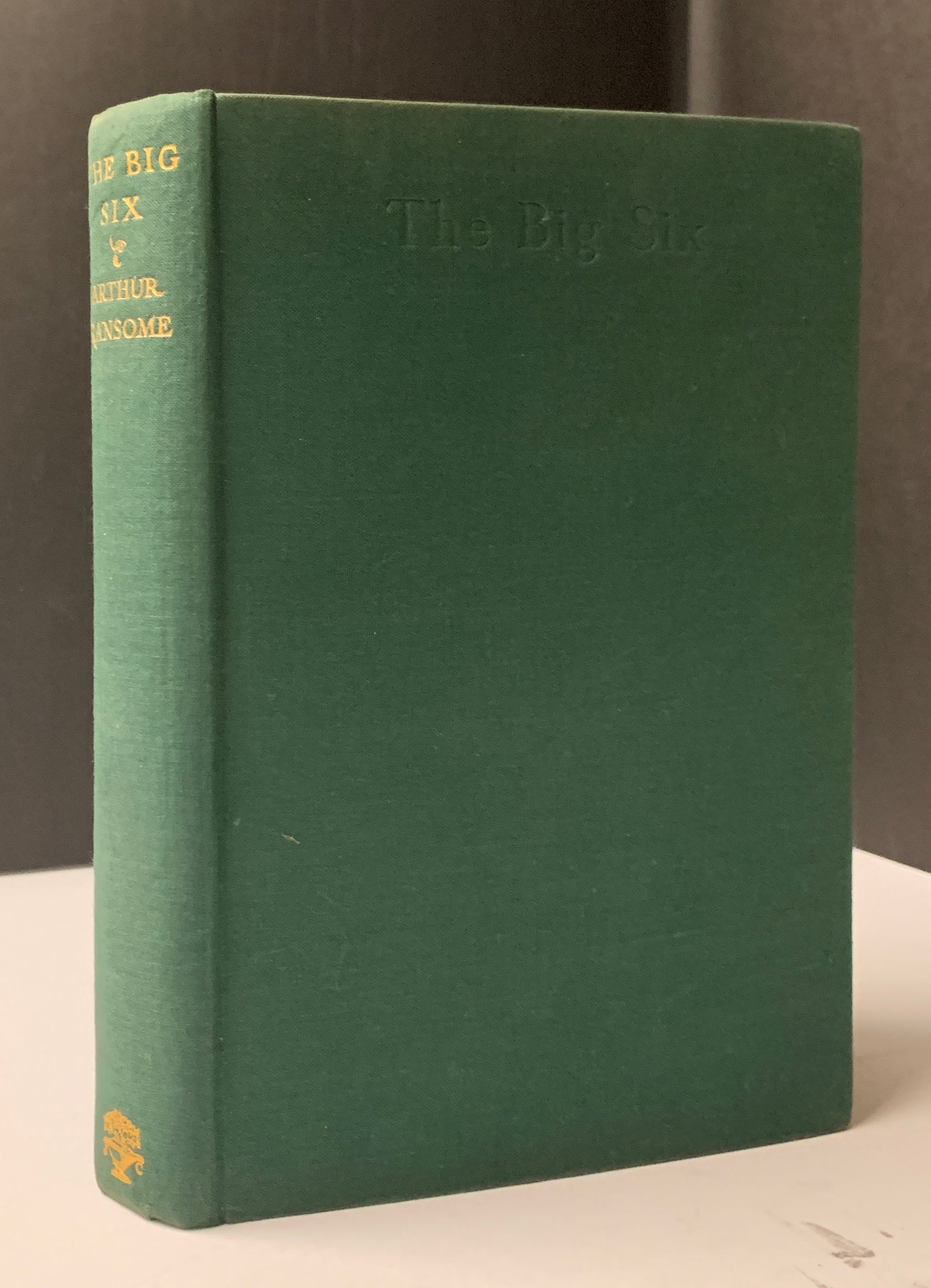 RANSOME, Arthur. The Big Six. London: Jonathan Cape [1940]. 12mo, 400pp. Green cloth stamped in gilt on spine and blind-stamped on front. Two-color map endpapers; b&w illustrations throughout. Spine ends and corners slightly rubbed, light foxing on fore-edge of sheets – but not extending internally, endpapers minutely foxed, in original color pictorial dust jacket (light edgewear, some soiling, spine lightly sunned).