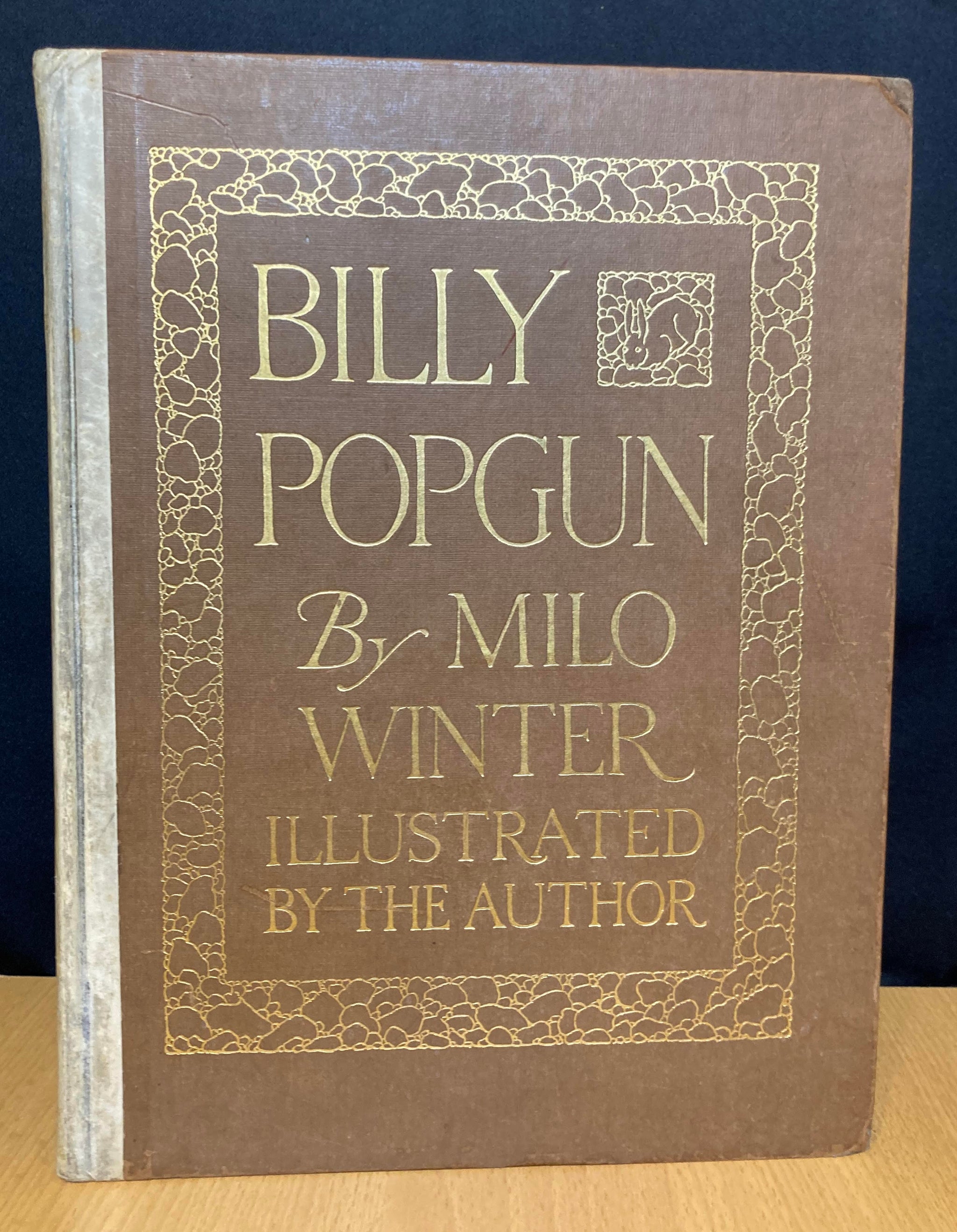 WINTER, Milo. Billy Popgun. Boston: Houghton Mifflin, 1912. 4to, x 62pp. White quarter-vellum with brown boards decoratively stamped in gilt. Pictorial endpapers; 8 color plates and numerous b&w illustrations; t.e.g. Corners and edges of boards a bit rubbed, vellum a bit discolored, else a clean, bright copy.