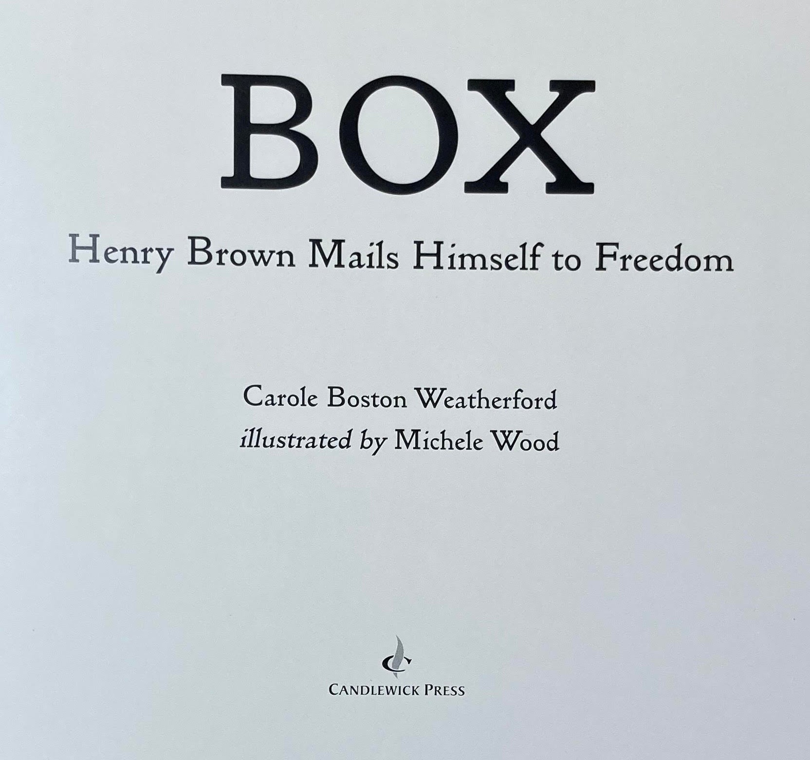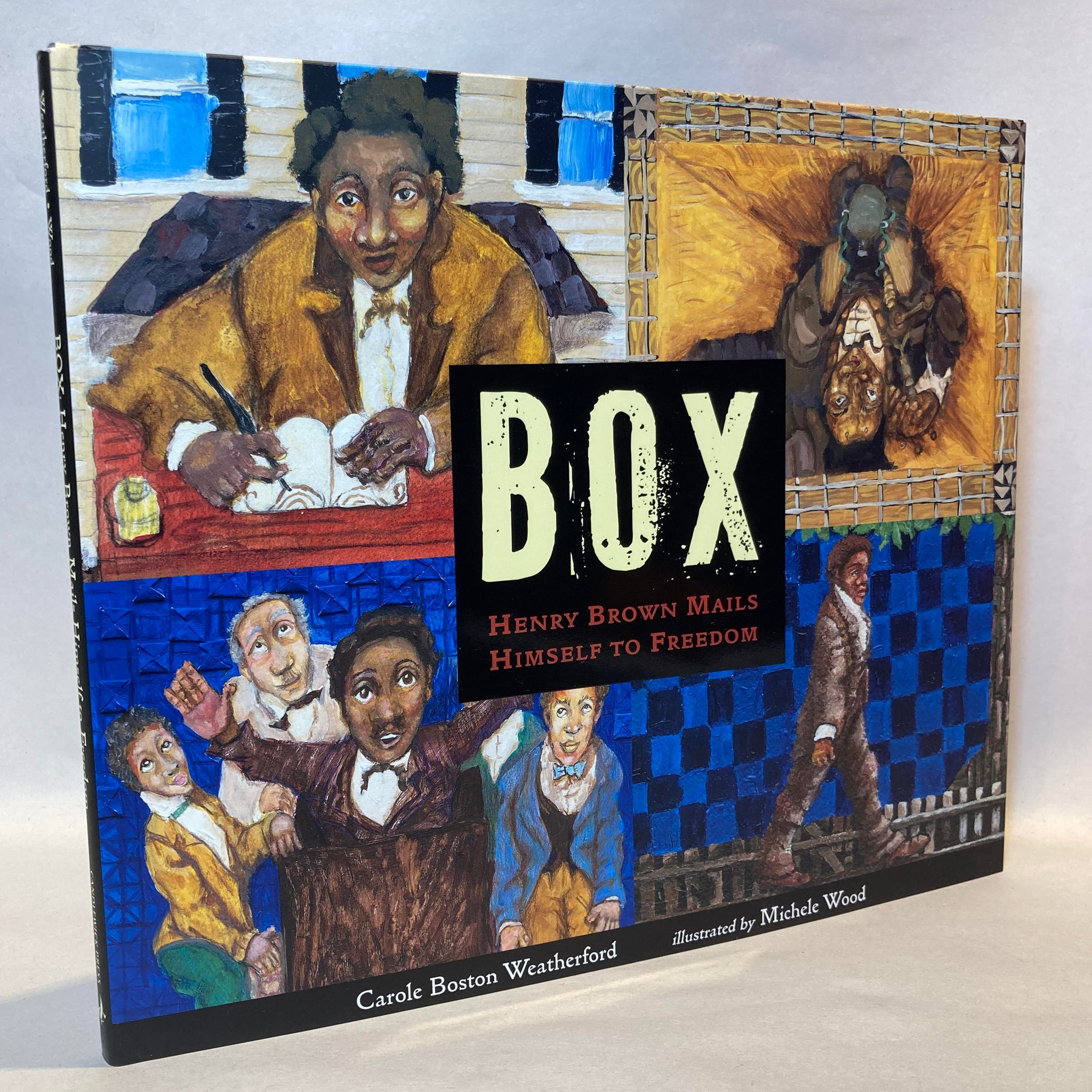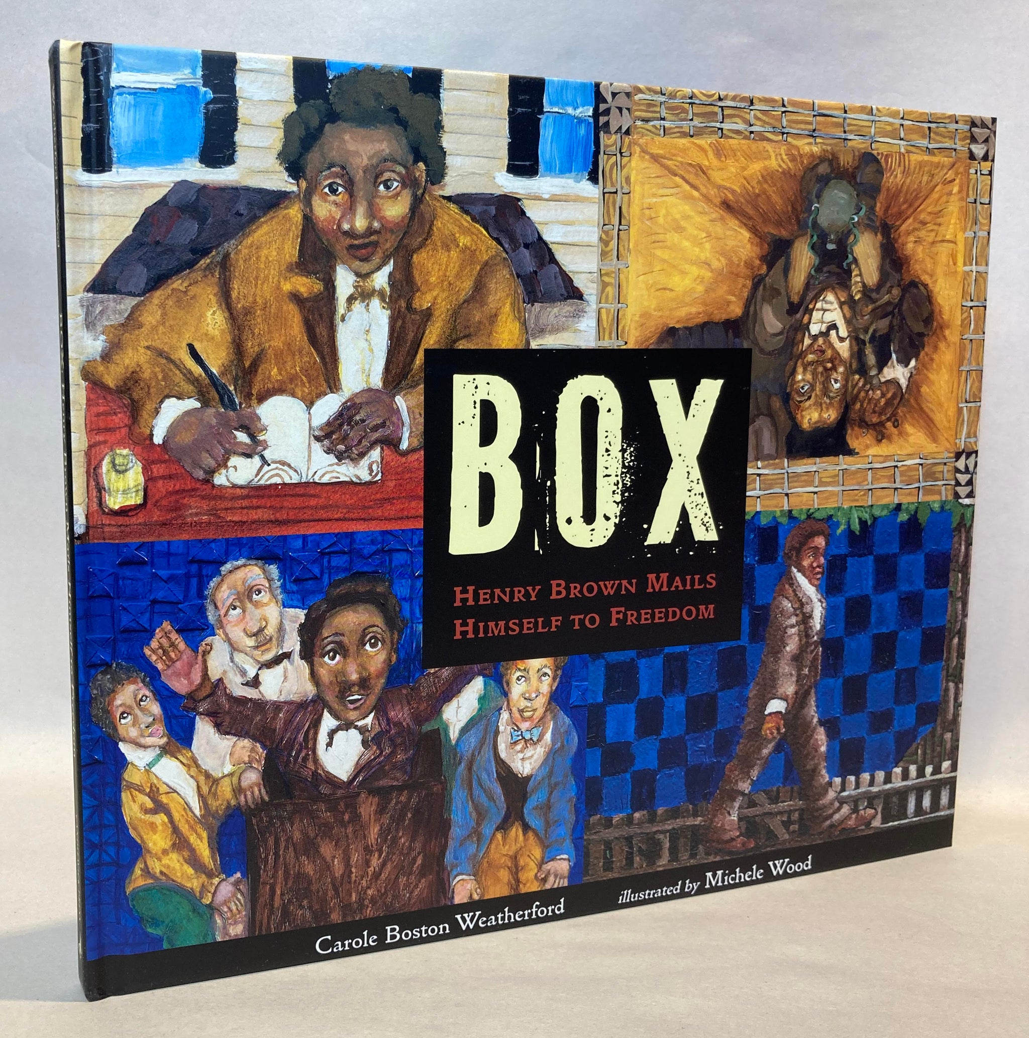 WEATHERFORD, Carole Boston. Box Henry Brown Mails Himself to Freedom. Illustrated by Michelle Wood. [Sommerville, MA]: Candlewick [2020]. Oblong 4to, [56]pp. Color pictorial boards. Black endpapers; color illustrations on every page. A fine copy in original color pictorial dust jacket (no medal affixed). Signed by Newbery Honor author Carole Boston Weatherford.