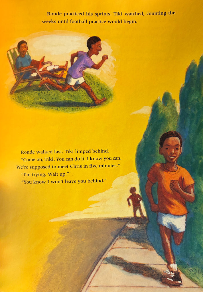 First edition. Based on the childhood of National Football League superstars Ronde and Tiki Barber, this inspiring picture book about the values of family, hard work, and determination shows what it takes to be a champion. Tiki and Ronde were each other’s best friends. Together from the start, these twins might not have been the strongest or the tallest, but they were fast and worked hard at what they loved. And they loved sports, especially football. Then one day Tiki hurt his knee badly in a biking accident, and he was sure he’d never be able to play again. Their mother had always told them, “You are each other’s best friends. Stick together, believe in yourselves, and you can do anything.” They kept her words in their hearts and never gave up.