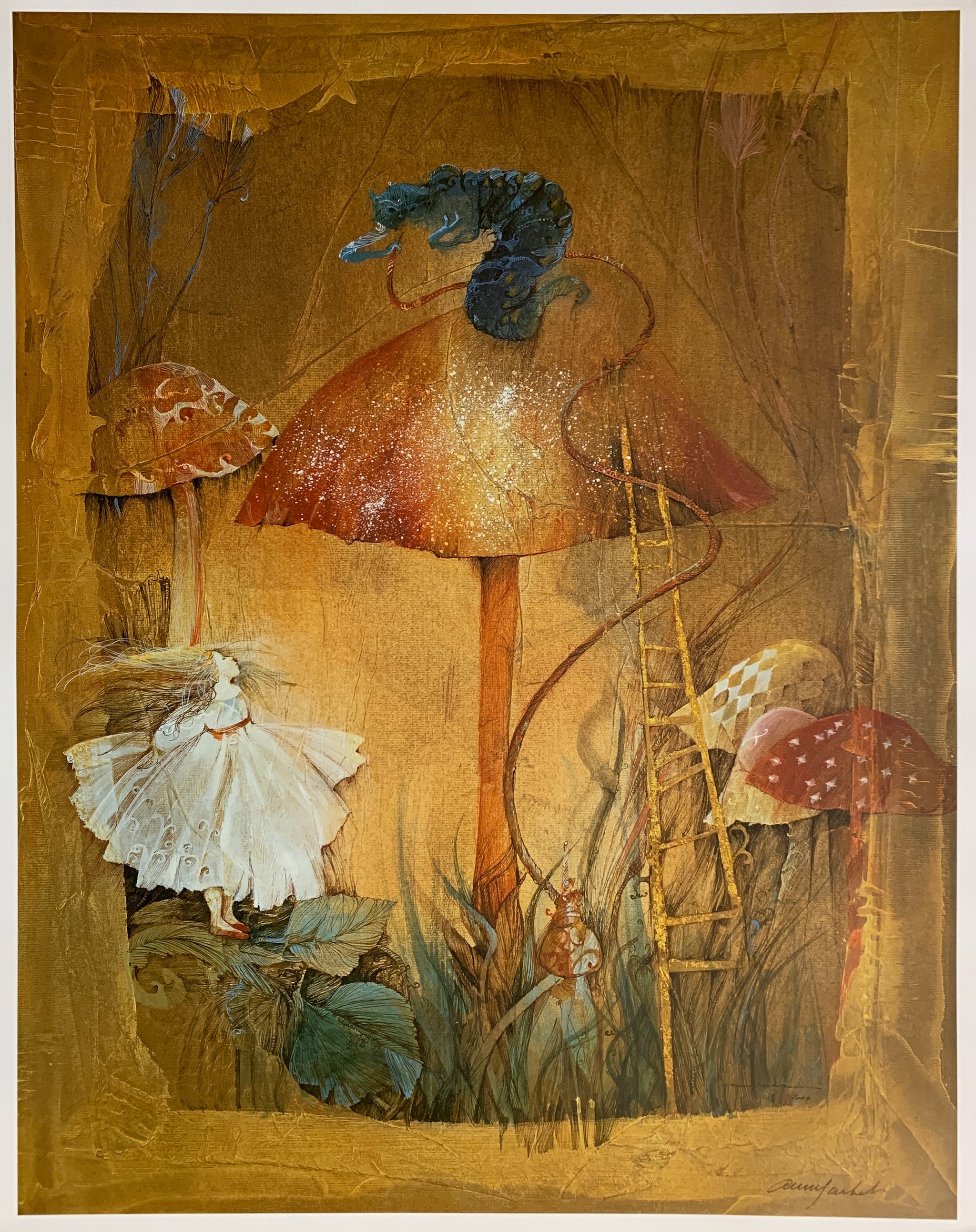 and What Alice Found There. The image shows Alice meeting the Caterpillar for the first time in Carroll's first novel, and appears in the book on page 39. The image measures 18.5" x 23.5" on a 19.75" x 25" poster.