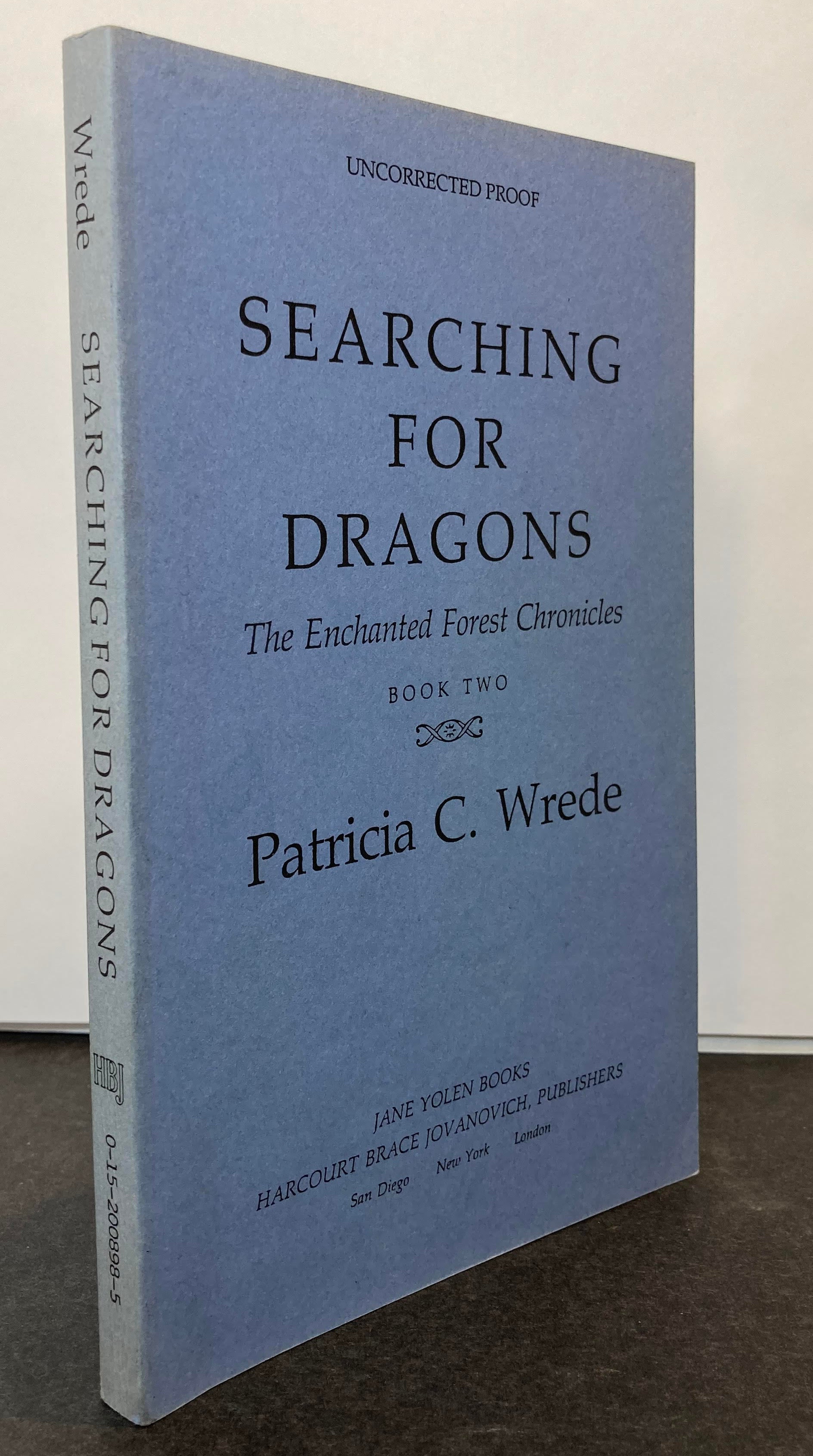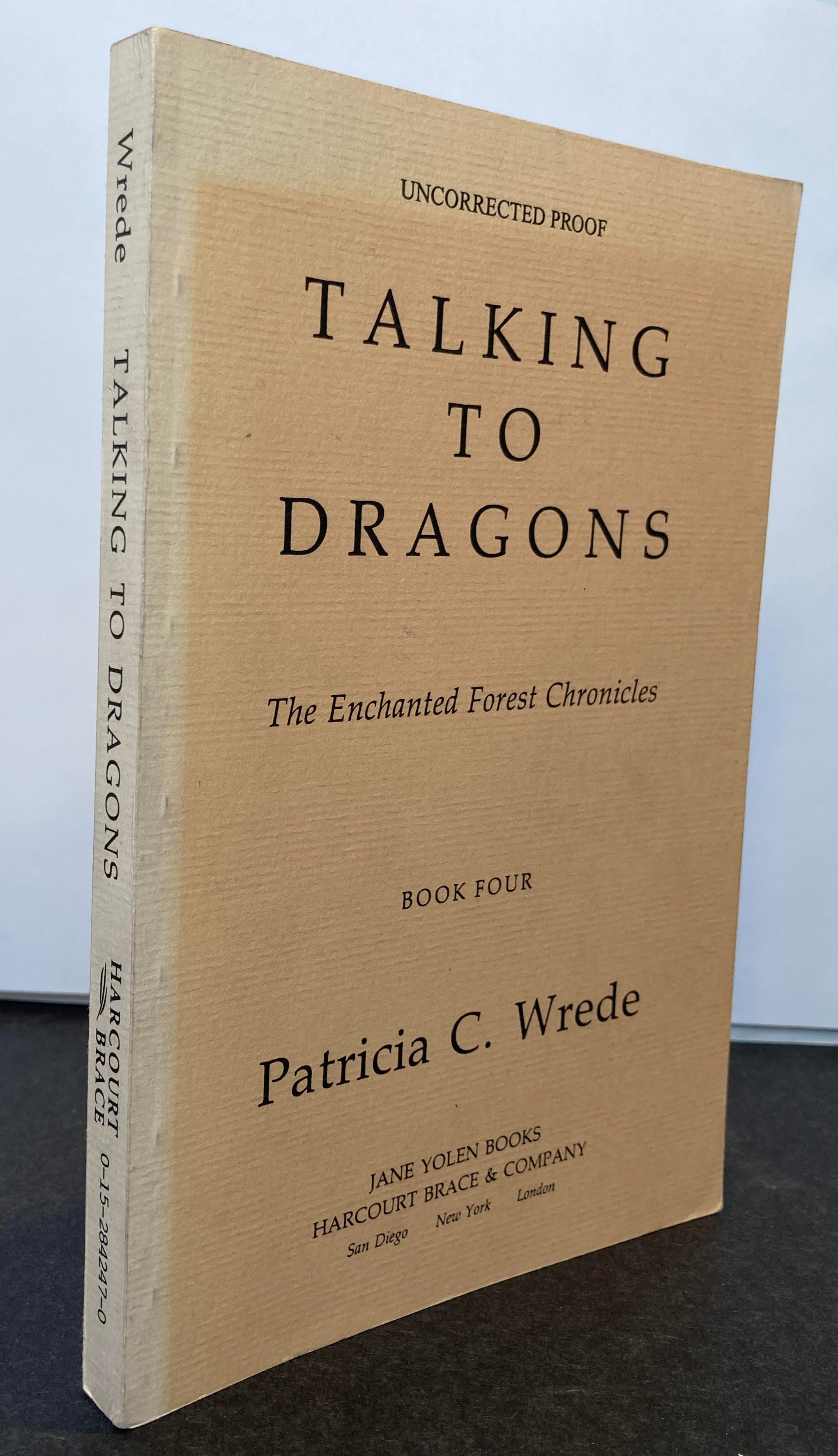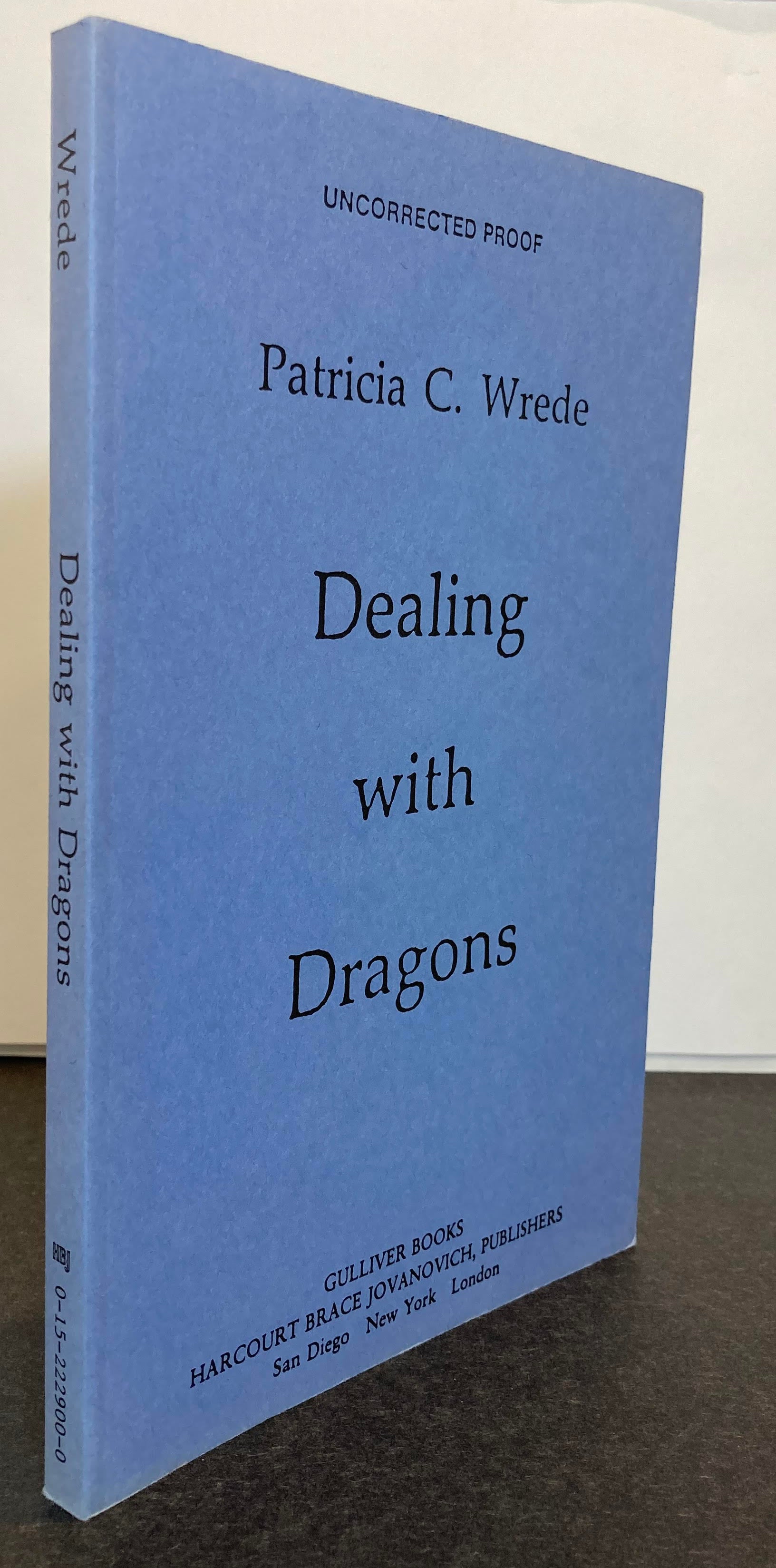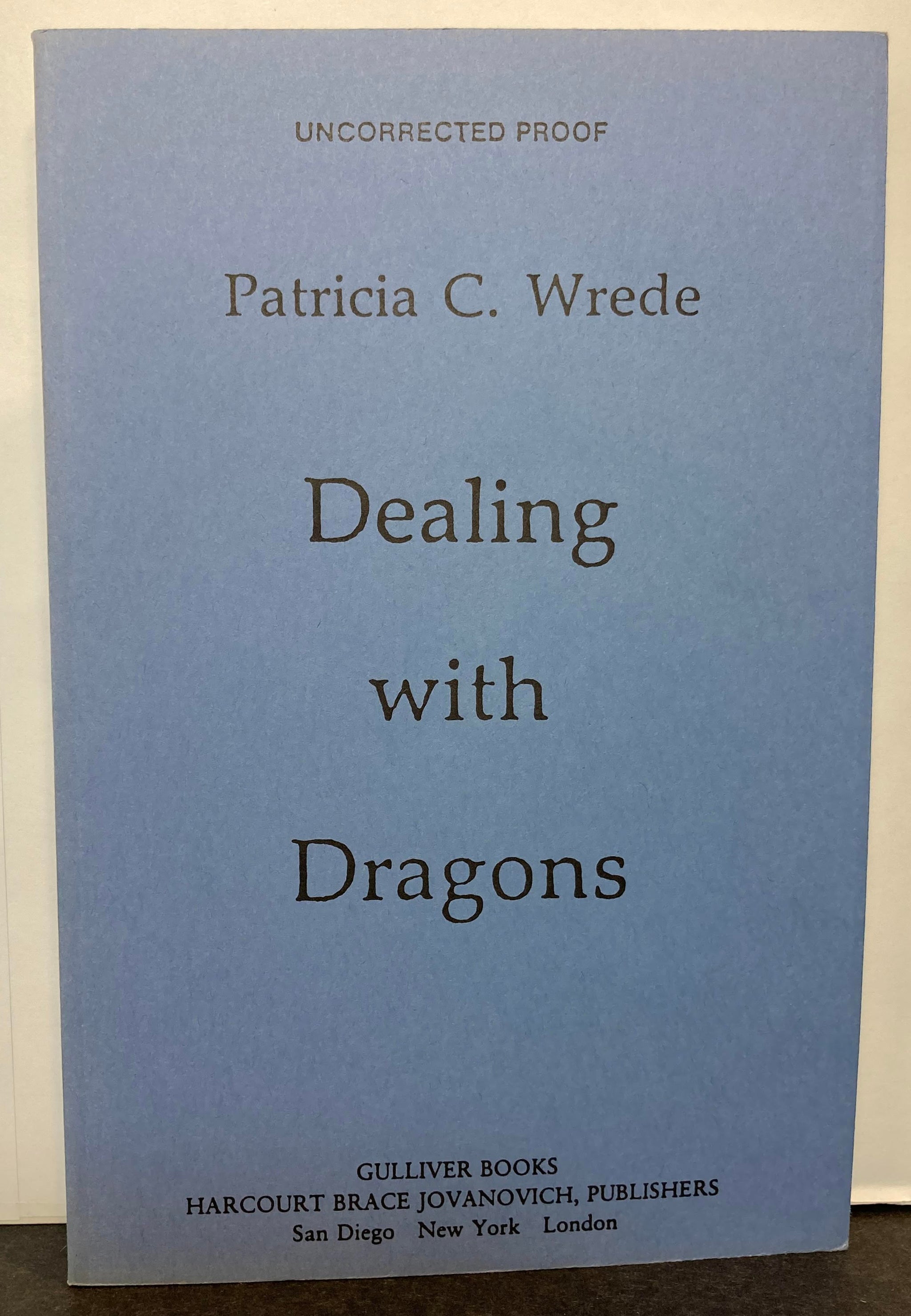 Uncorrected proofs issued in advance of the first editions of this series. The fourth volume in the set was previously published as a paperback in 1985 prior to the rest of the series, but was edited to correspond to the rest of the novels in the series prior to the re-issue of this title, making this the earliest form of this revised version. A feisty princess who has no patience with stuck up princes chooses instead to partner with a dragon. One of the more humorous fantasy novels for young teens from the end of the 20th Century.