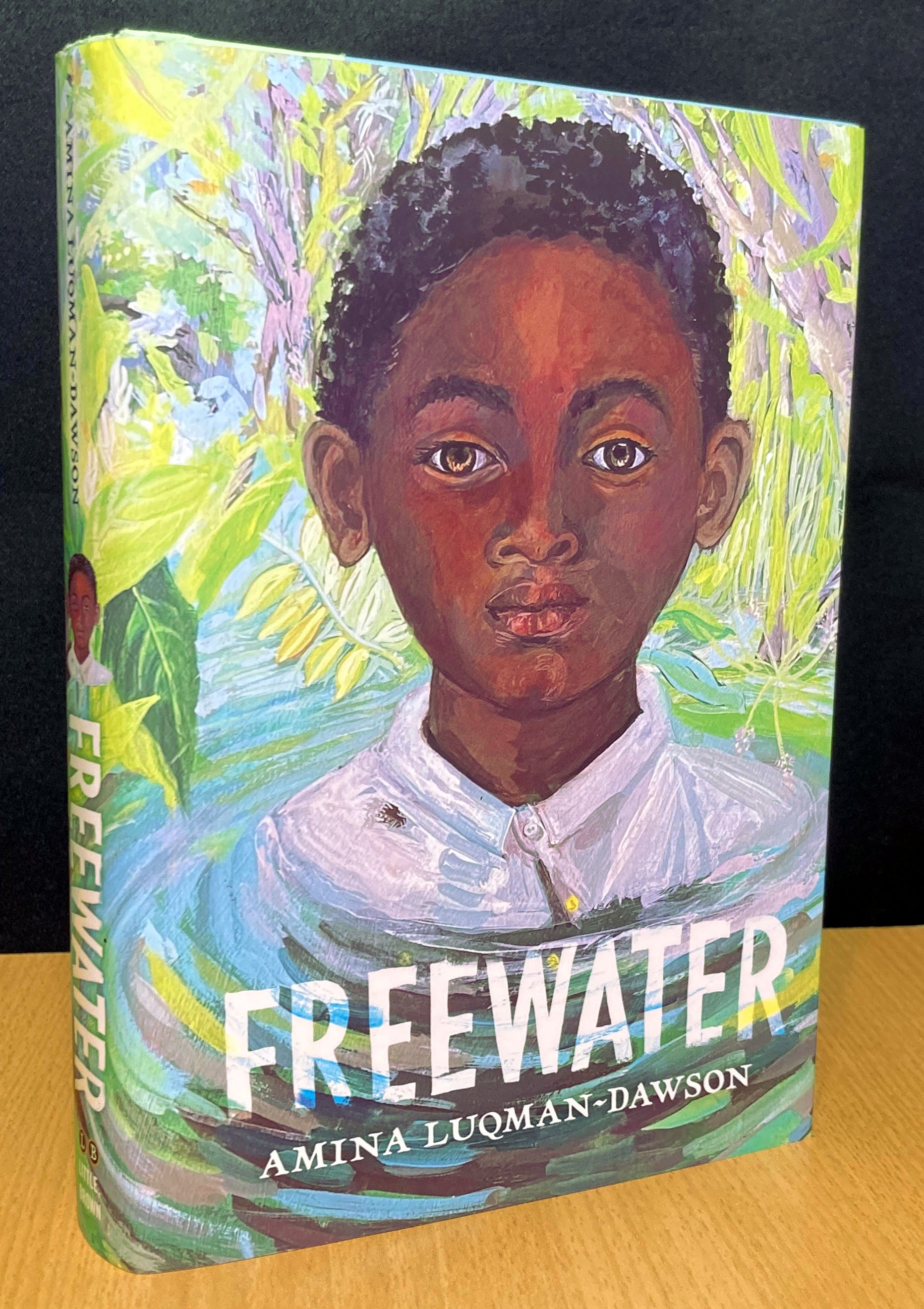 LUQMAN-DAWSON, Amina. Freewater. NY: Little, Brown [2022]. 8vo, viii 408pp. Light green board spine stamped in gold with light blue boards. A fine copy in original color pictorial dust jacket (no medal affixed). With a bookplate signed by the author, Newbery Medalist Amina Luqman-Dawson, laid in.