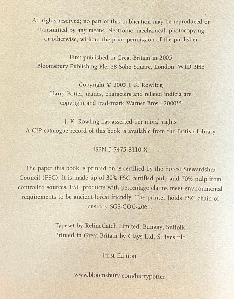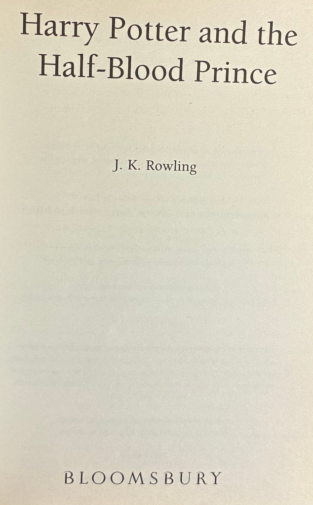 ROWLING, J[oanne] K[athleen]. Harry Potter and the Half-Blood Prince. [London]: Bloomsbury [2005]. 8vo, 607pp. Black cloth with spine stamped in gold. A fine copy with expected page ageing in original color pictorial dust jacket.