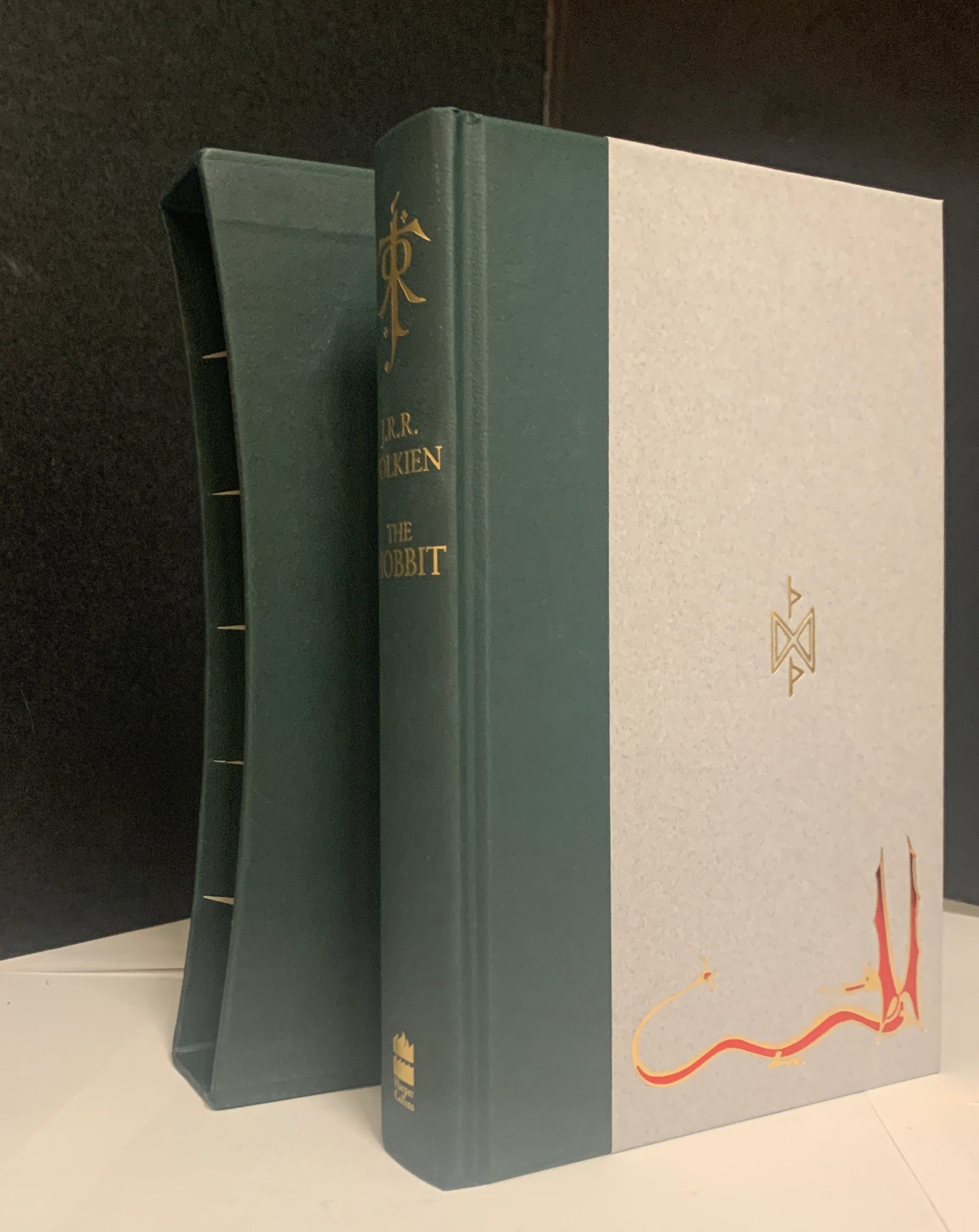 TOLKIEN, J[ohn] R[onald] R[euel]. The Hobbit. Or There and Back Again. [London}: HarperCollins [2004]. 8vo, xxxiv 299pp. Green board spine stamped in gold with gray boards decoratively stamped in gold and red foil on front and back. Differing illustrated endpapers; 14 full-color illustrations and two-color fold-out map. A fine copy housed in publisher’s green board slipcase.