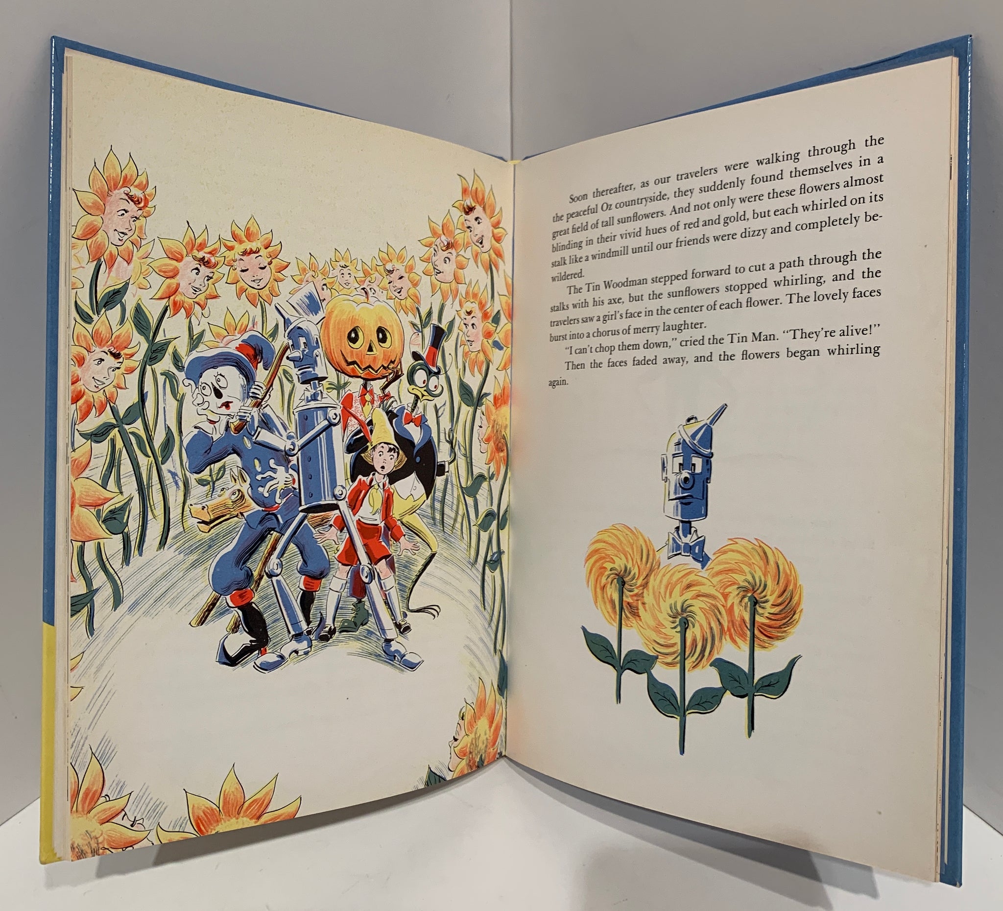 BAUM, L[yman] Frank. The Land of Oz. Adapted for younger children by Jean Kellogg. Pictured by Dick Martin. Chicago: Reilly & Lee [1961]. 4to, [60]pp. Color pictorial boards. Color pictorial endpapers; color illustrations on every other spread, all other spreads illustrated in b&w. Lower front corner ever so slightly bumped, else a truly fine, bright copy without dust jacket as issued.