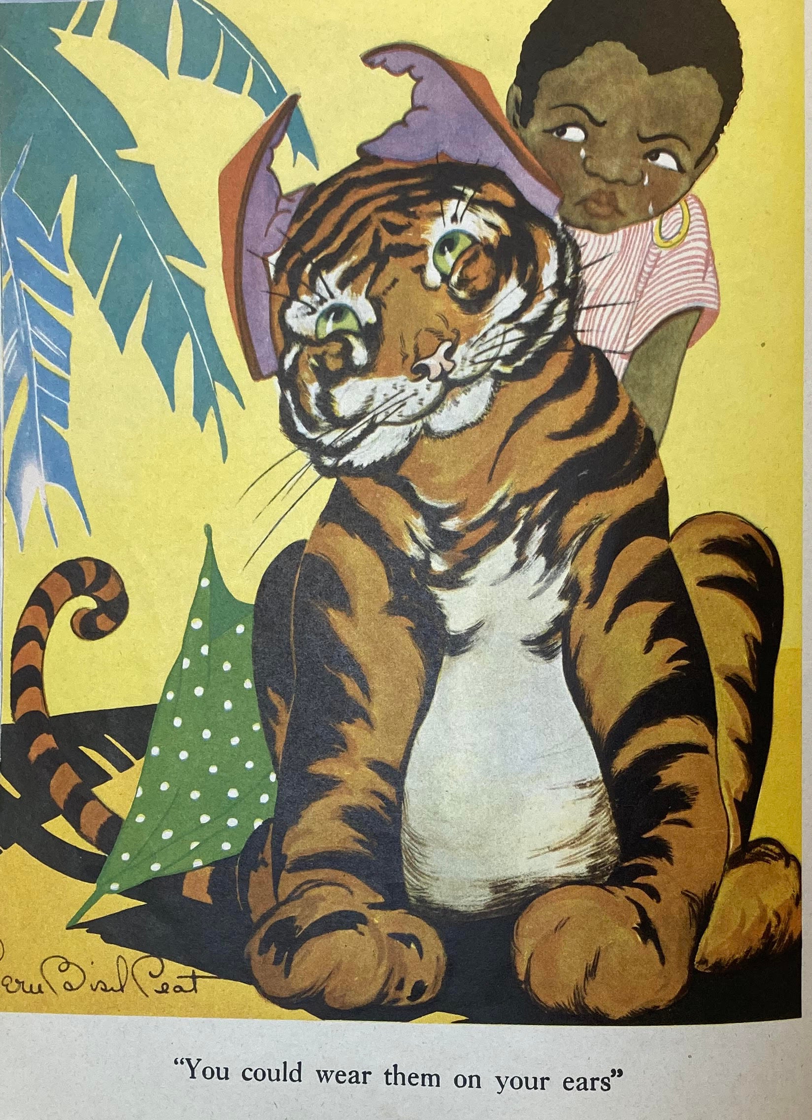 “Deluxe edition.” A charmingly illustrated edition of Bannerman’s tale by Fern Bisel Peat, best known for her distinctive pastel paintings that brought delight to a generation across hundreds of children’s books in the 1930’s-50’s. The vibrant pastels are a wonderful highlight of this remarkably crisp copy. Adding to the fun, this copy has “Shaub’s Shoe Shop/Children’s Department/Lancaster, PA” stamped on the inside cover. Whether this copy was sold by them or given away as a promotion is anyone’s guess.