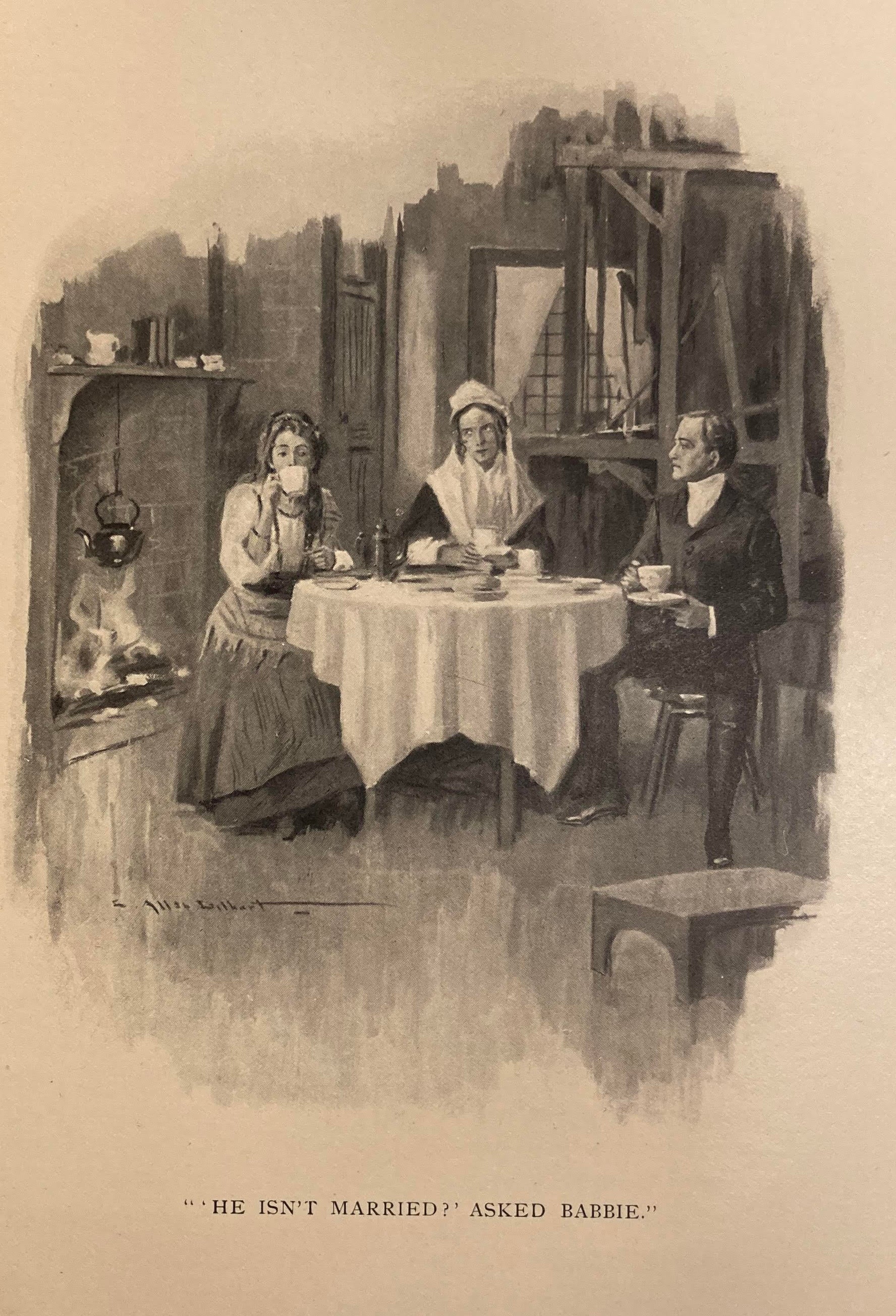 First “Maude Adams Edition” with photography from the play. J.M. Barrie’s charming tale of a young, impoverished minister tending to his first congregation who falls in love with a beautiful and mysterious gypsy. This handsome edition features photographs of the 1897 dramatization of the 1891 novel with famed stage actress Maude Adams. This was Barrie’s best-known work until his creation of Peter Pan – which also starred Maude Adams!