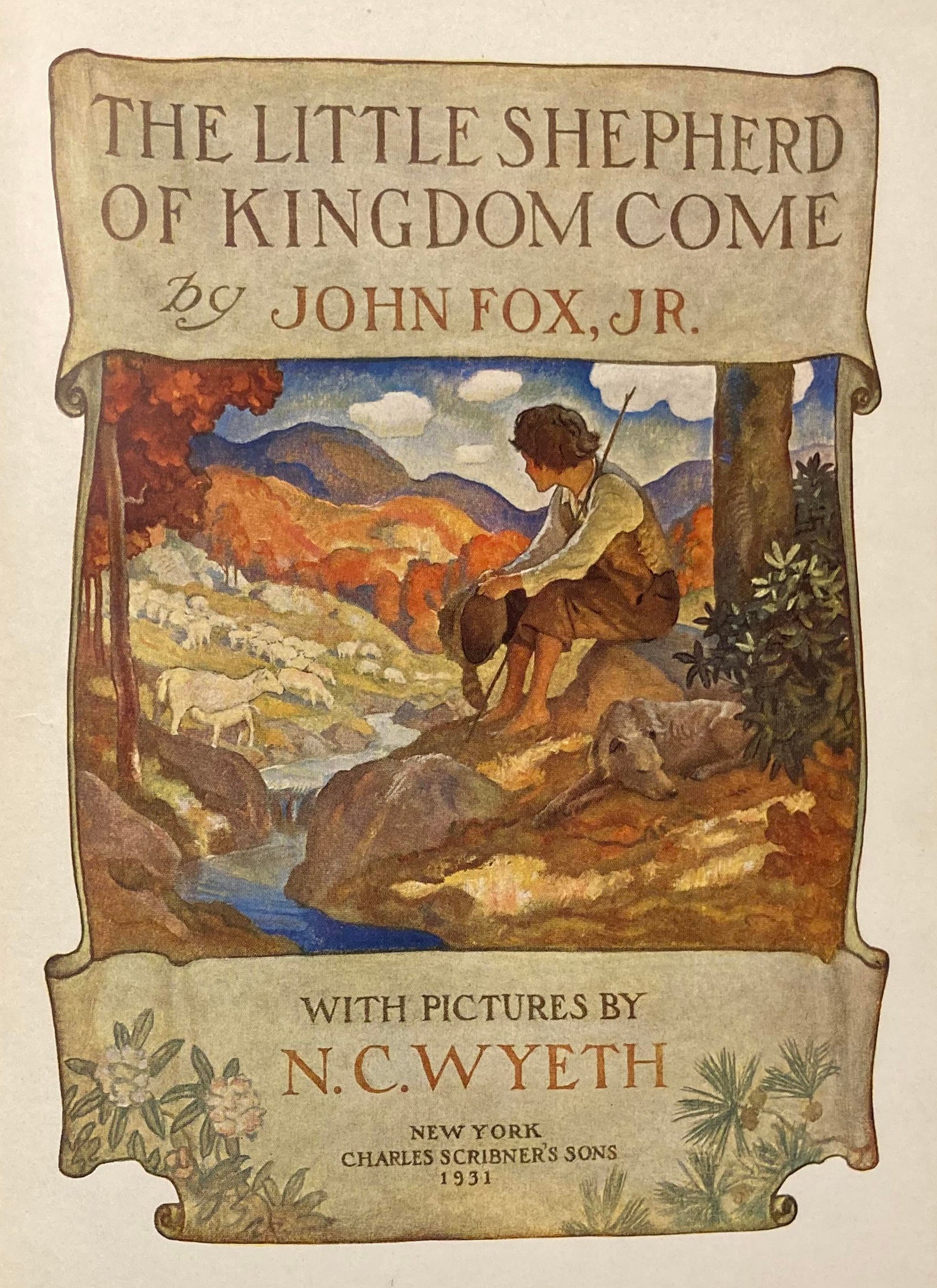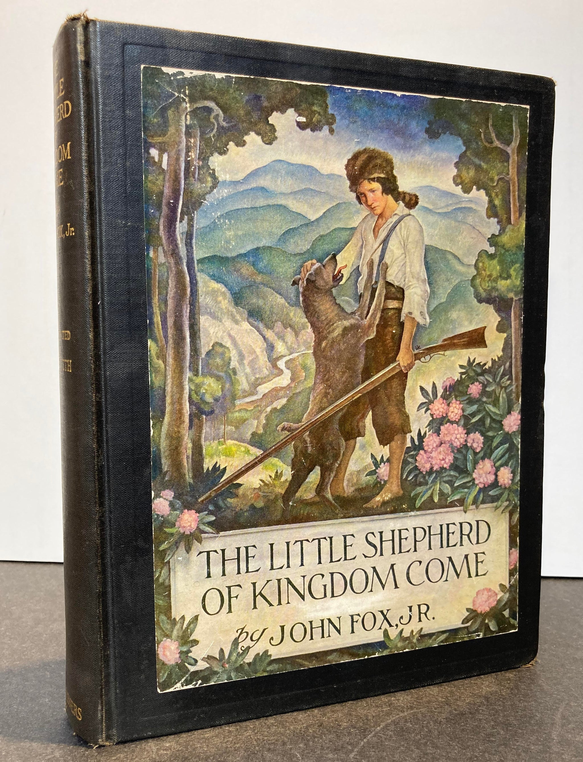 FOX Jr., John. The Little Shepherd of Kingdom Come. With Pictures by N.C. Wyeth. NY: Charles Scribner’s Sons, 1931. 8vo, x 322 [1] advt. Black cloth with spine stamped in gold and color pictorial label affixed to the front. Color pictorial endpapers; 10 color plates plus color plate title page. Spine ends and corners a bit worn, edges less so, edge of label slightly rubbed, evidence of some erasure from blank area beneath title on label, endpapers a tad discolored at hinge due to binding glue, sheets a touch aged, else an internally clean, tight copy with plates still clean and bright.