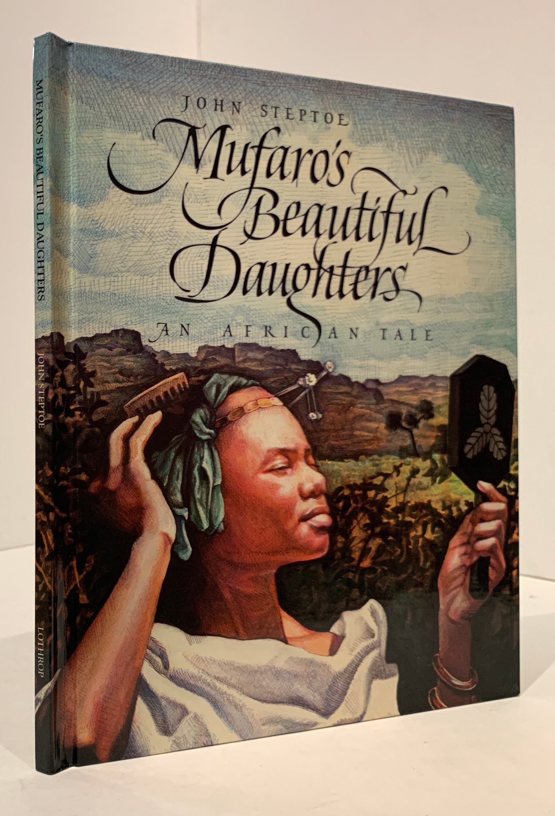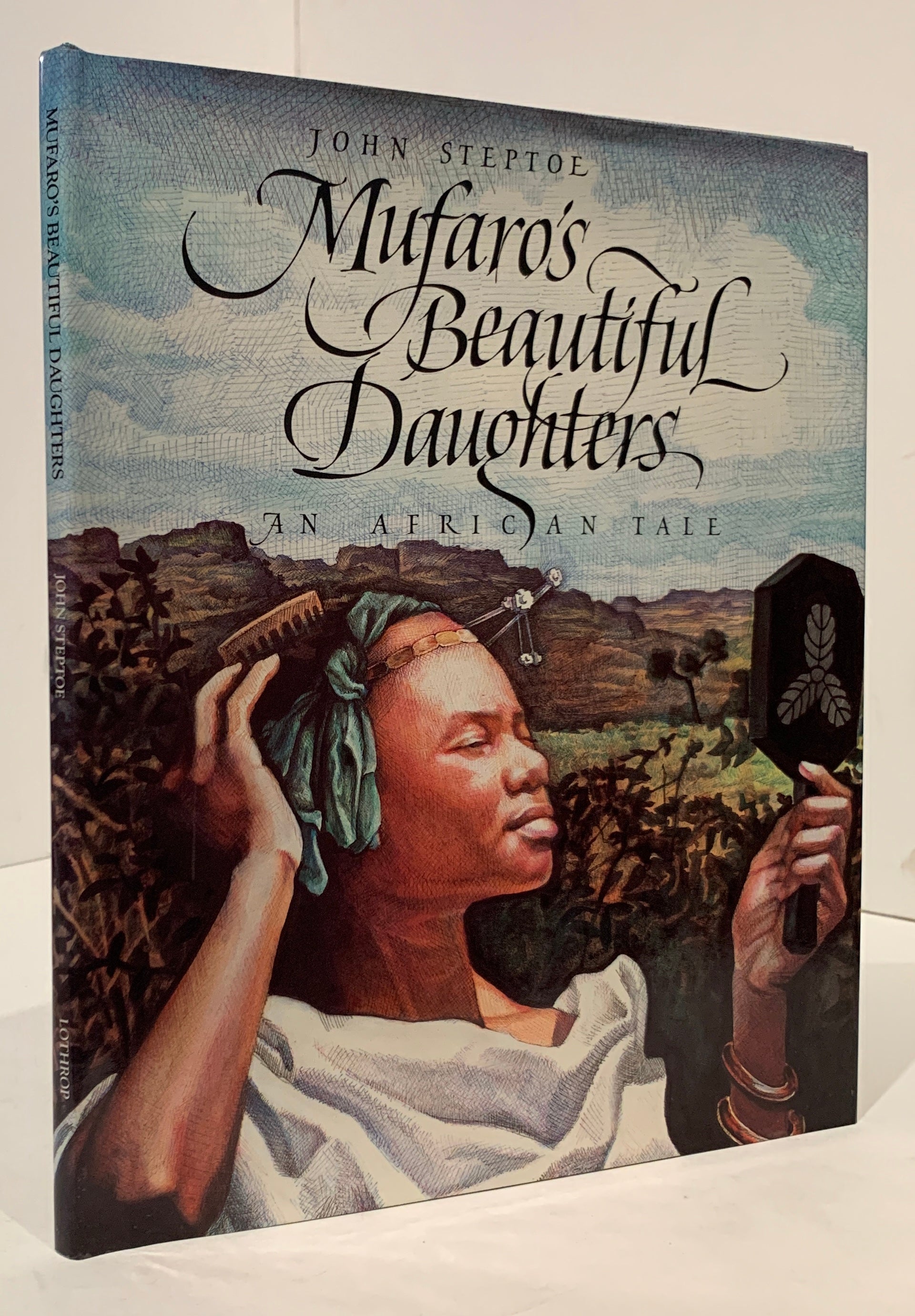 STEPTOE, John. Mufaro’s Beautiful Daughters. An African Tale. [NY: Lothrop, Lee & Shepard, 1987]. 4to, [32]pp. Glazed color pictorial boards. Aquamarine endpapers; color illustrations on nearly every page. Minute rubbing to lower front corner, outer hinges slightly discolored (probably from binding glue) else a fine, bright copy in original color pictorial dust jacket (medal not affixed).