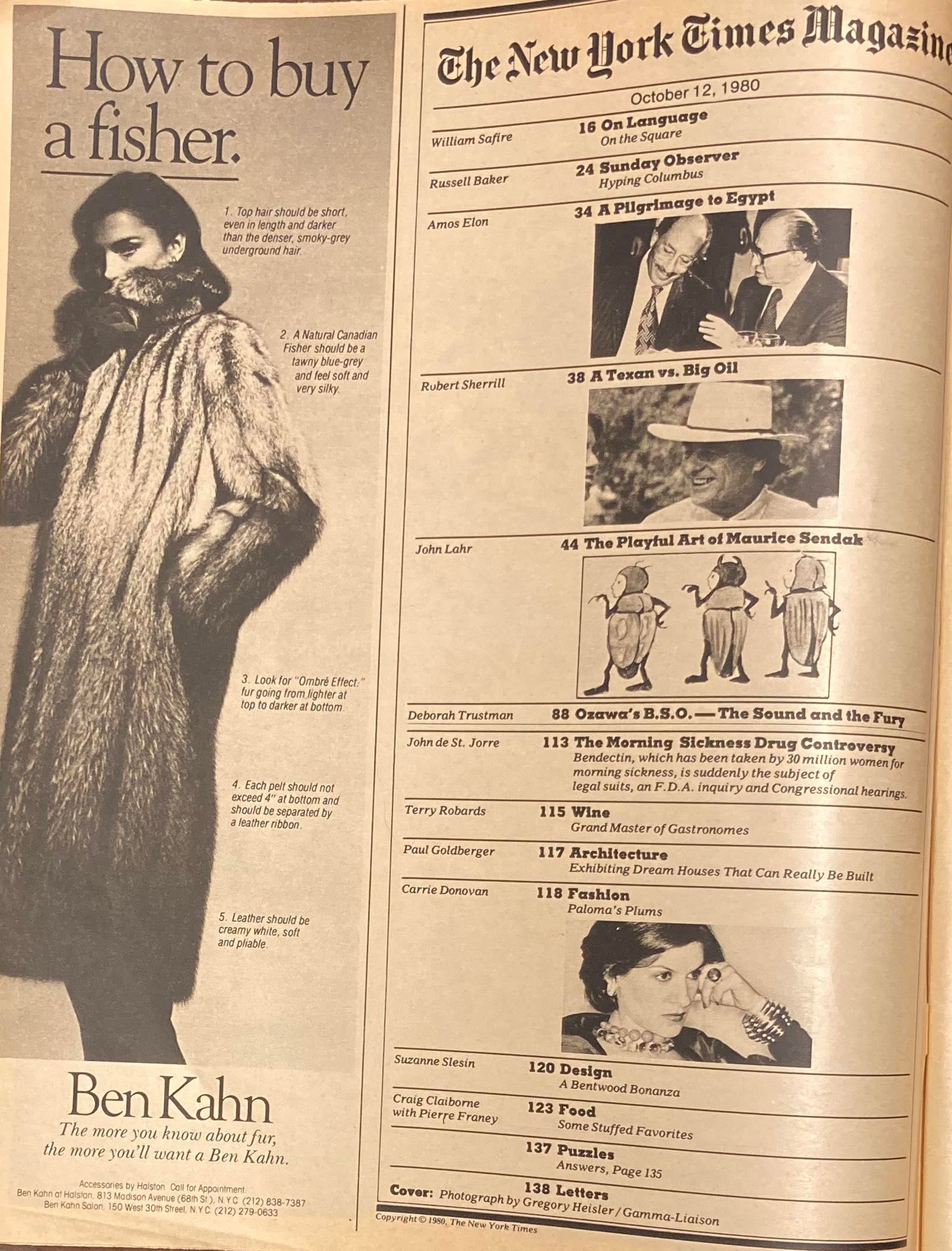 [SENDAK, Maurice]. The New York Times Magazine, October 12, 1980. 4to, 140pp. Color photographic paper wrappers. Color and b&w illustrations and photographs throughout. Light wear to spine ends and corners, pages aged, else a fine copy.