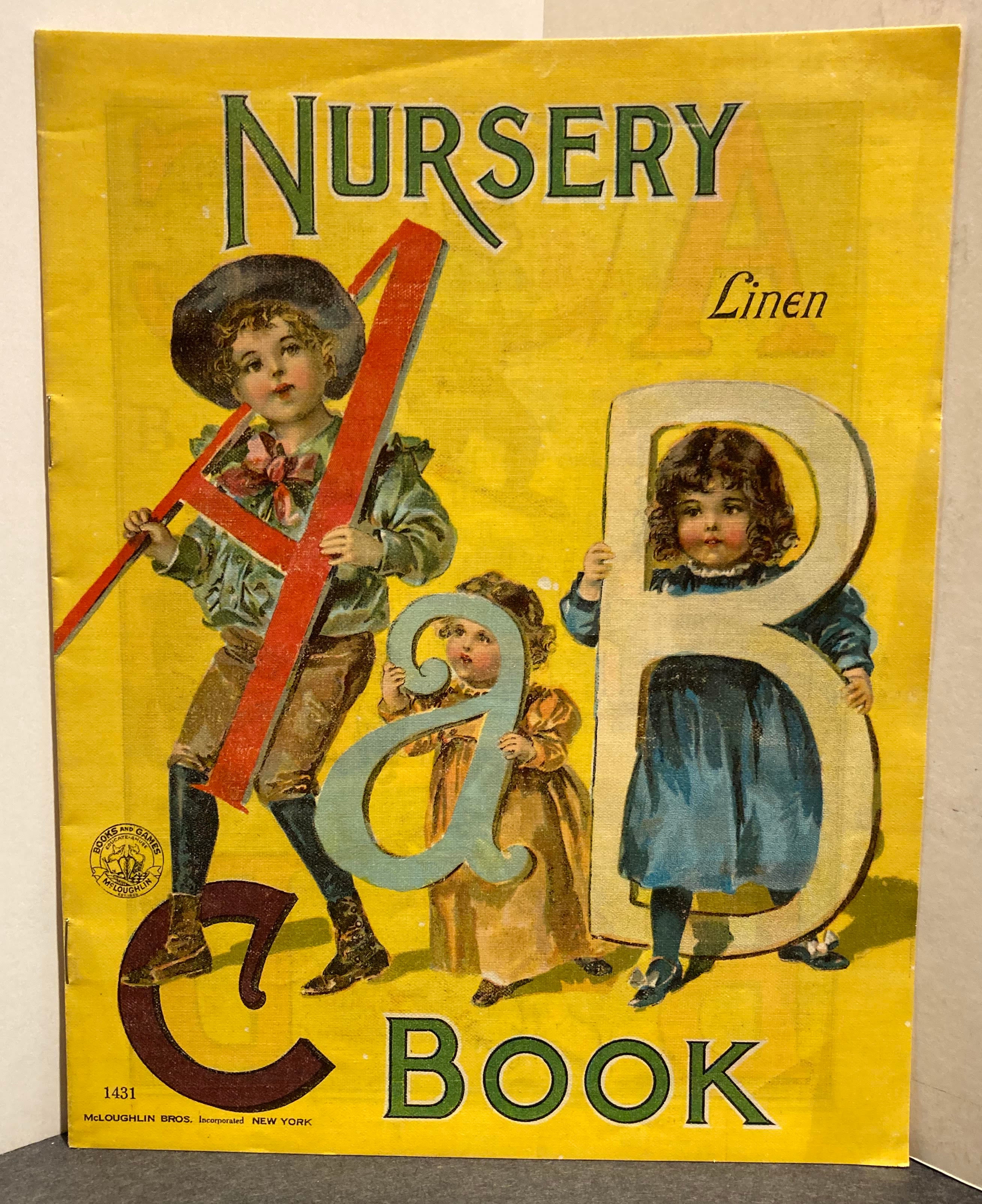 [McLOUGHLIN BROTHERS]. Nursery ABC Book. [NY: McLoughlin Brothers, ca. 1908]. 4to, [8]pp. Color pictorial linen wrappers. 6 full-page color illustrations and numerous smaller two-color illustrations. Light rubbing to wrappers, some “bleed” of illustrations through the “linen” paper, else a remarkably clean, bright copy.
