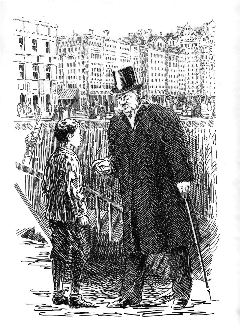 Original artwork from the interior of The Watcher in the Shadows by Mark Edward Geyer . Page 139. Morgaunt and Sacha face to face.