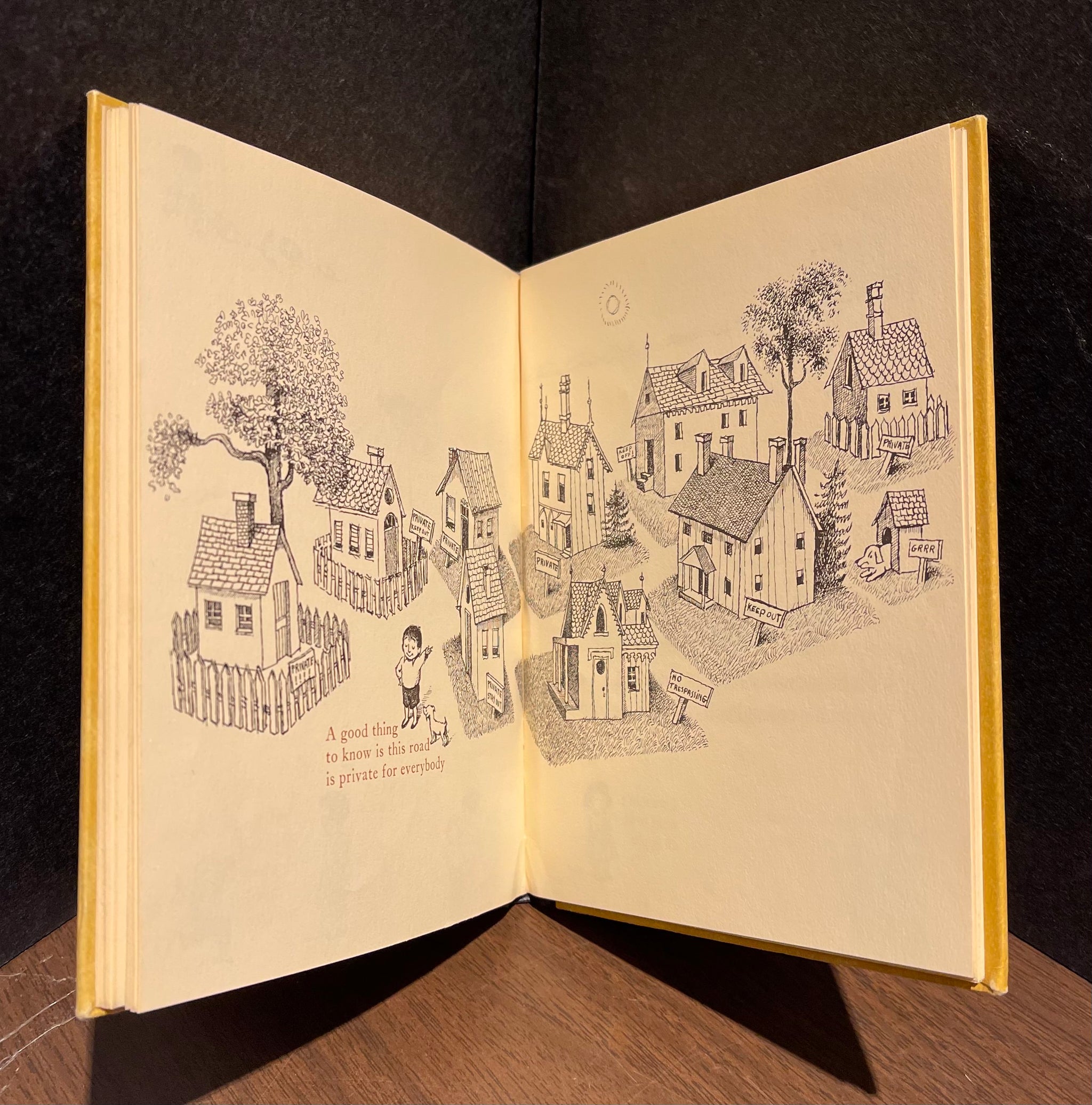 First edition, having the imprint of Harper & Brothers who changed their name to Harper & Row in 1962. A companion to Krauss & Sendak’s first collaboration, A Hole is to Dig, this delightful book of wisdom and aphorisms includes such gems as “A screaming song is good to know in case you need to scream.”