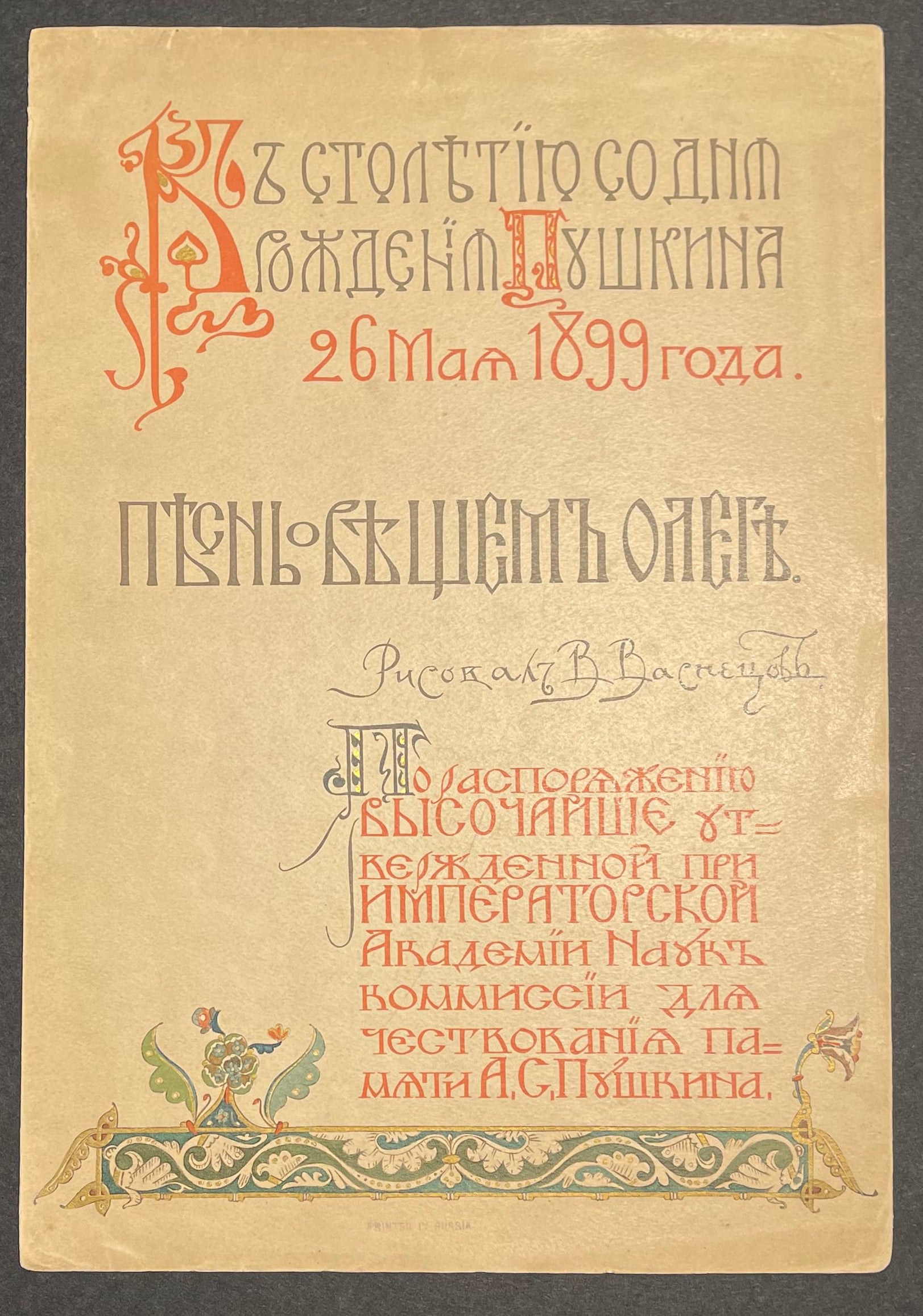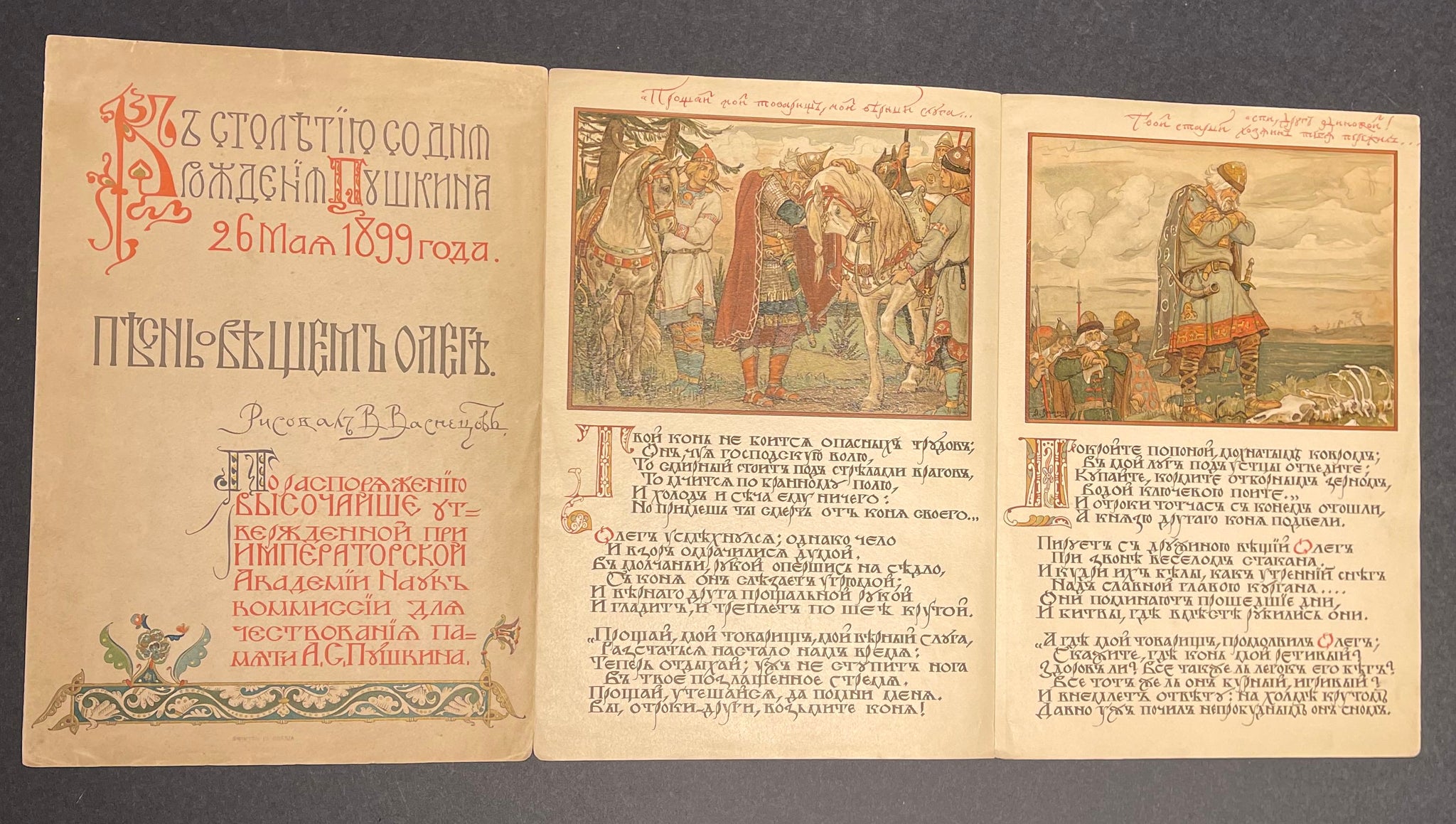 PUSHKIN, Aleksandr. Pesn o Veshchem Olege (Song of Oleg the Wise). [Illustrated by Viktor Vasnetsov].