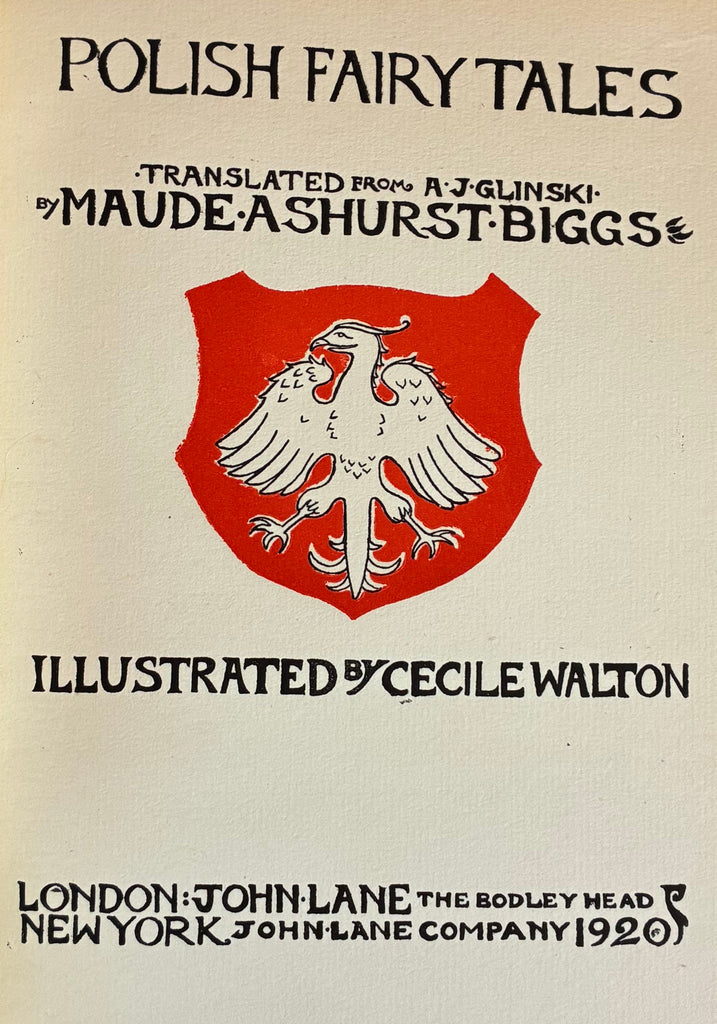 [WALTON, Cecile]. Polish Fairy Tales. Translated from A.J. Glinski by Maude Ashurst Biggs. Illustrated by Cecile Walton. London: John Lane, 1920. 4to, xvi 96pp. Blue cloth decoratively stamped in gilt. Pictorial endpapers; 20 color plates. Spine ends a bit worn, corners a bit rubbed, rear cover a tad scuffed, front hinge starting, endpapers a tad aged, else a clean, bright copy. From the collection of artist Charles Mikolaycek, with his signature!