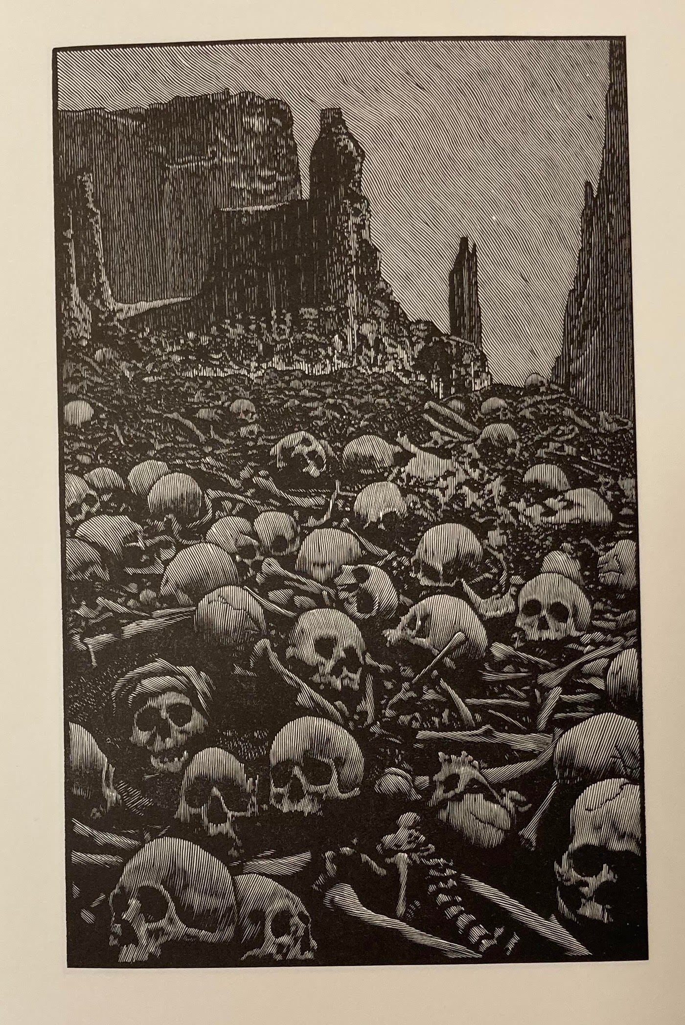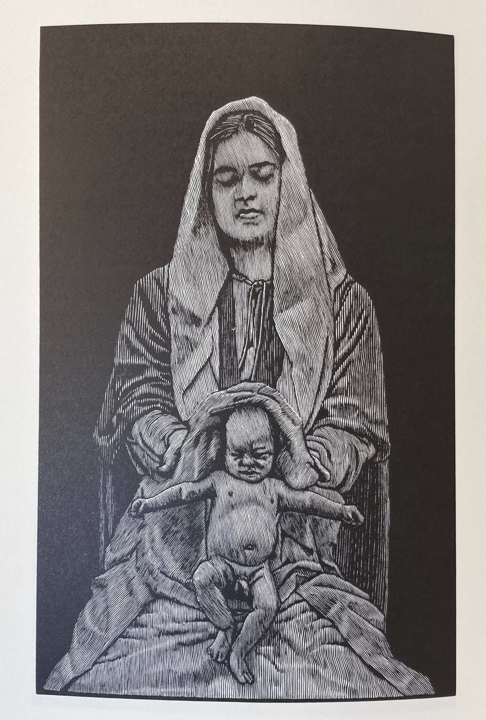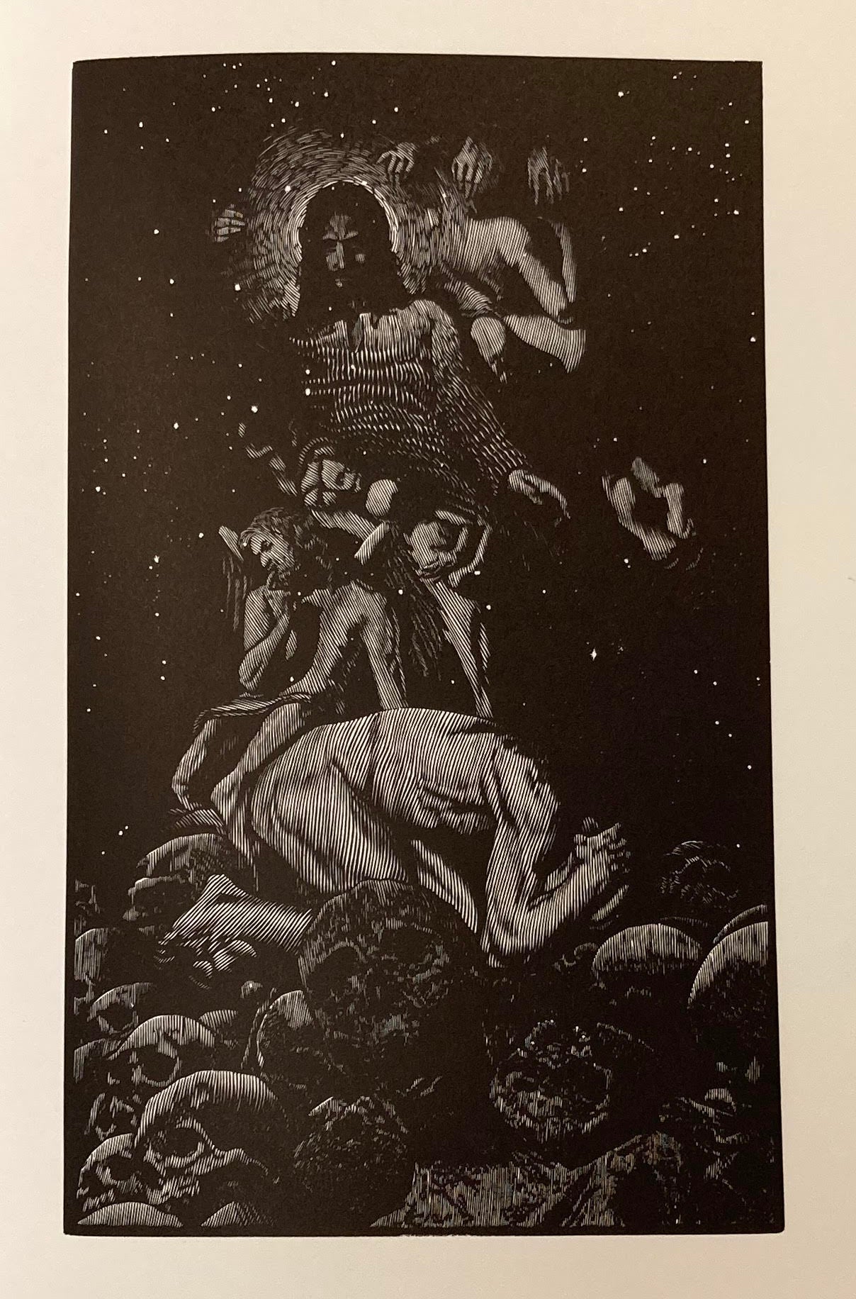 MOSER, Barry. Prospectus for the Pennyroyal Caxton Holy Bible. [North Hatfield, MA: Pennyroyal Caxton Press, 1999]. 8vo, [16]pp. Ivory heavy stock wrappers stamped in gold foil. 7 full page b&w engravings and a fold-out page of letterpress text printed on linen paper. A fine copy with presentation letter.
