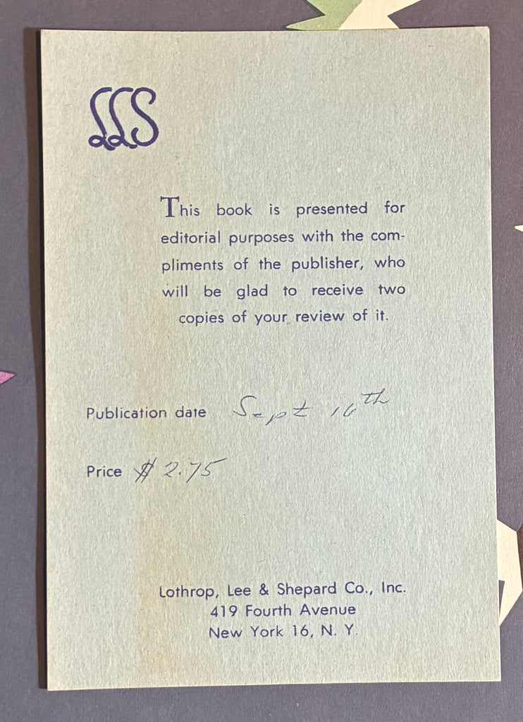 First edition, review copy with a review slip laid in. A charmingly simple bedtime story from this author/editor who had a huge contribution to the world of children's books!