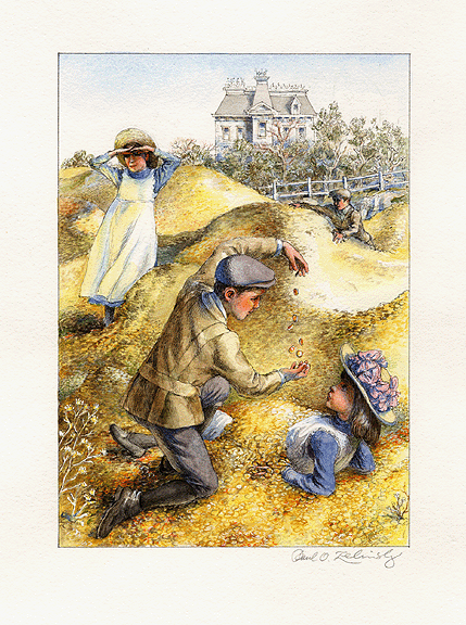 Playing with the Money Original Watercolor by Paul O. Zelinsky Caldecott winner Paul O. Zelinsky has created a wonderful image the children from E. Nesbit's 5 Children and It playing in piles of gold.
