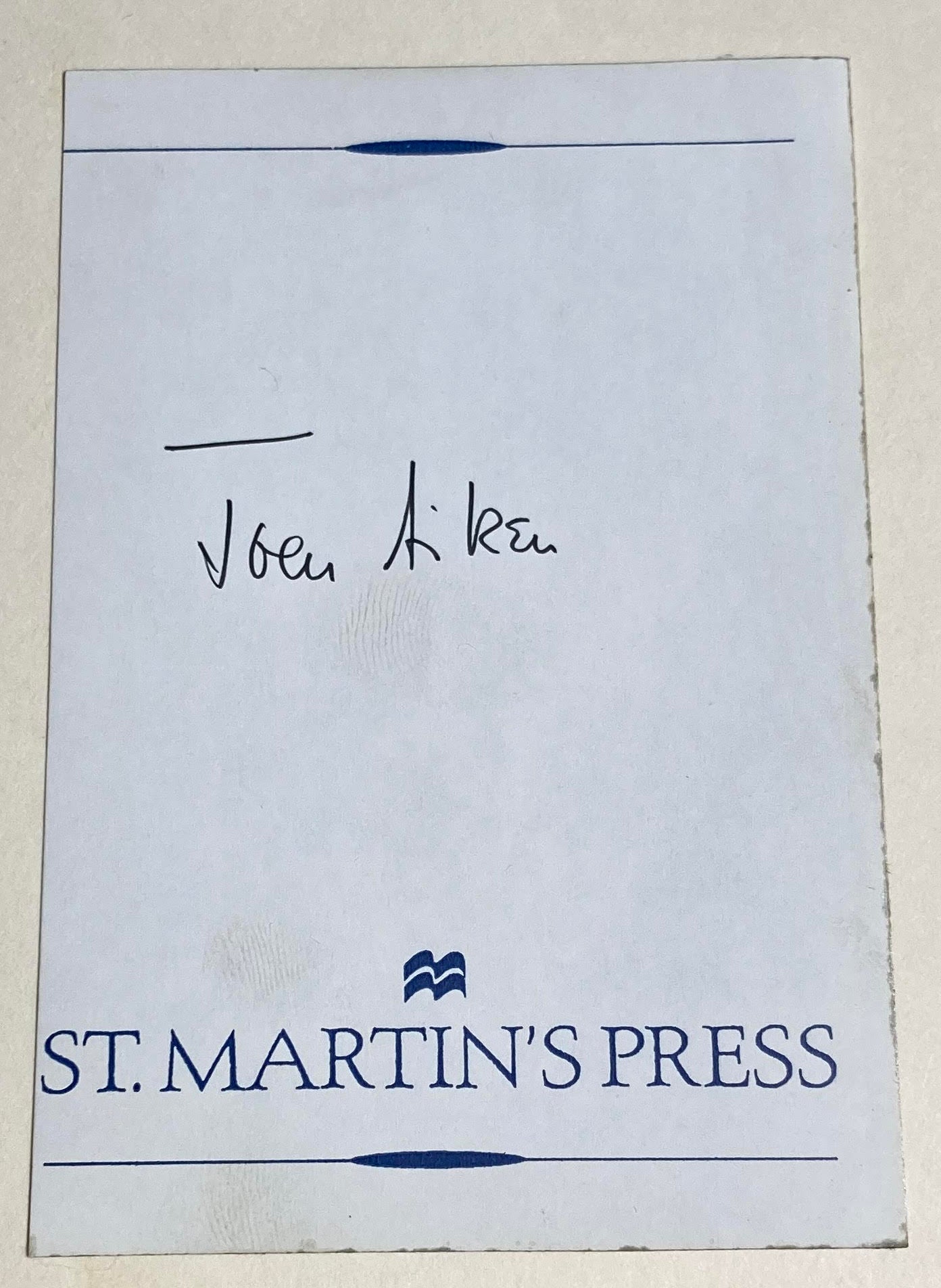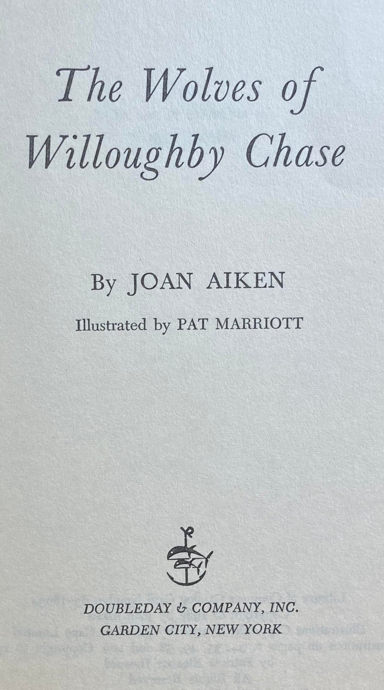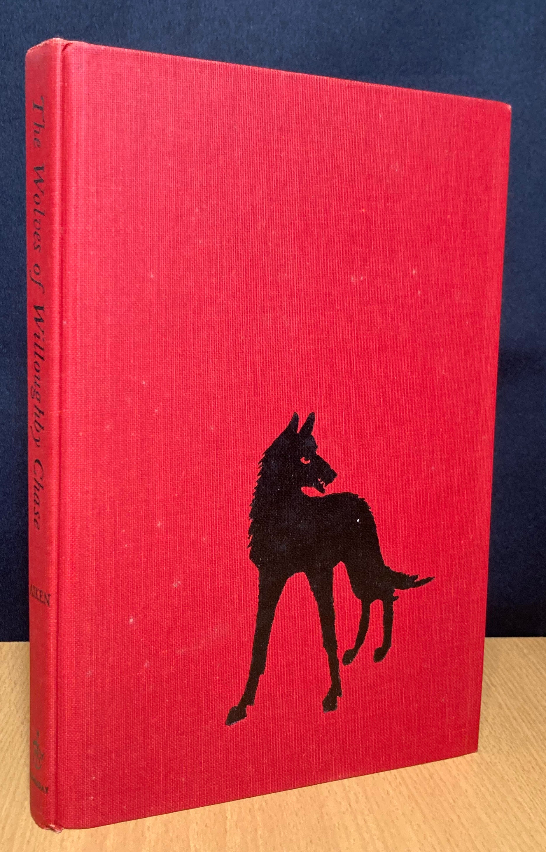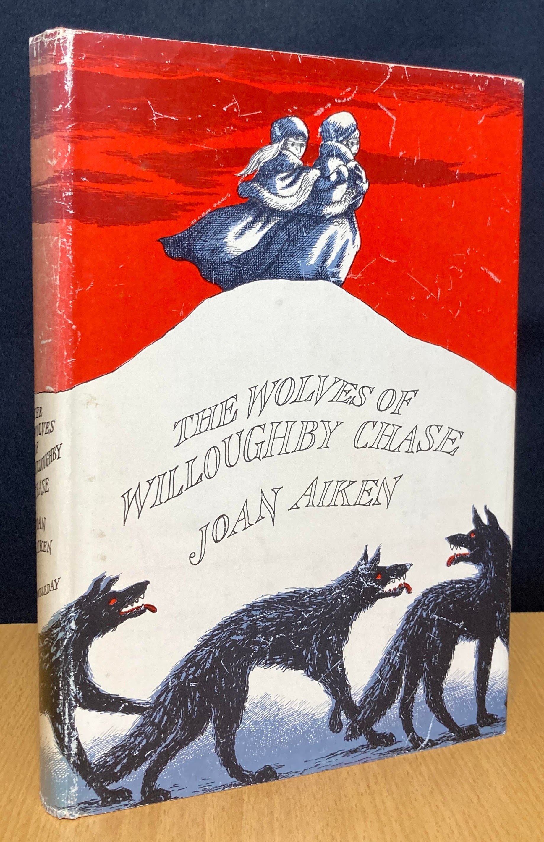 AIKEN, Joan. The Wolves of Willoughby Chase. Illustrated by Pat Marriott. Garden City, NY: Doubleday [1963]. 8vo, 168pp. Red cloth pictorially stamped in black. B&w illustrations throughout. Spine ends and corners a bit rubbed, endpapers a tad foxed, some slight foxing to top-edge of sheets, else a clean, bright copy in original color pictorial dust jacket (spine lightly sunned, folds and edges a bit rubbed, front cover lightly scratched). With a bookplate signed by the author, Joan Aiken, laid in.