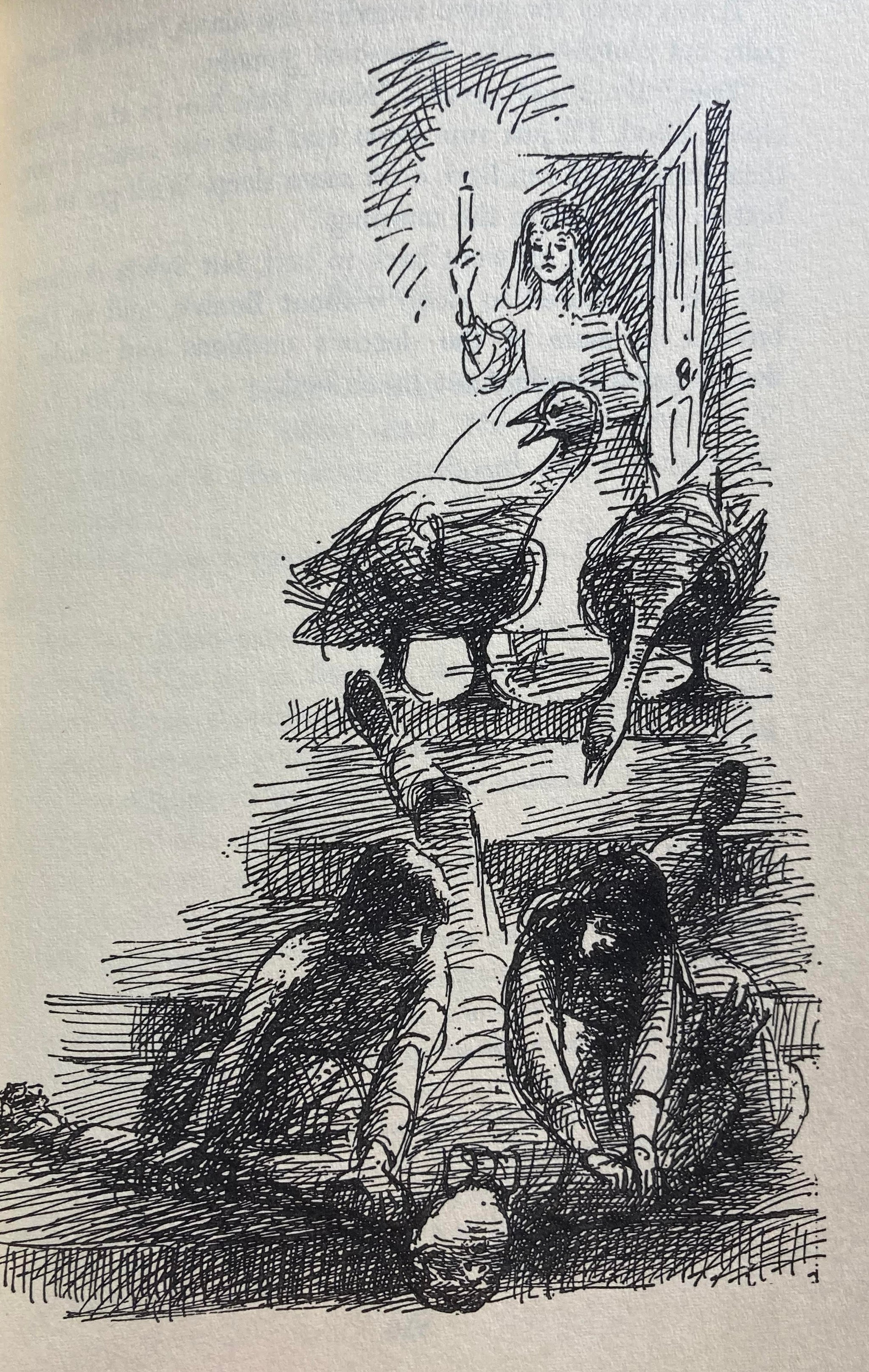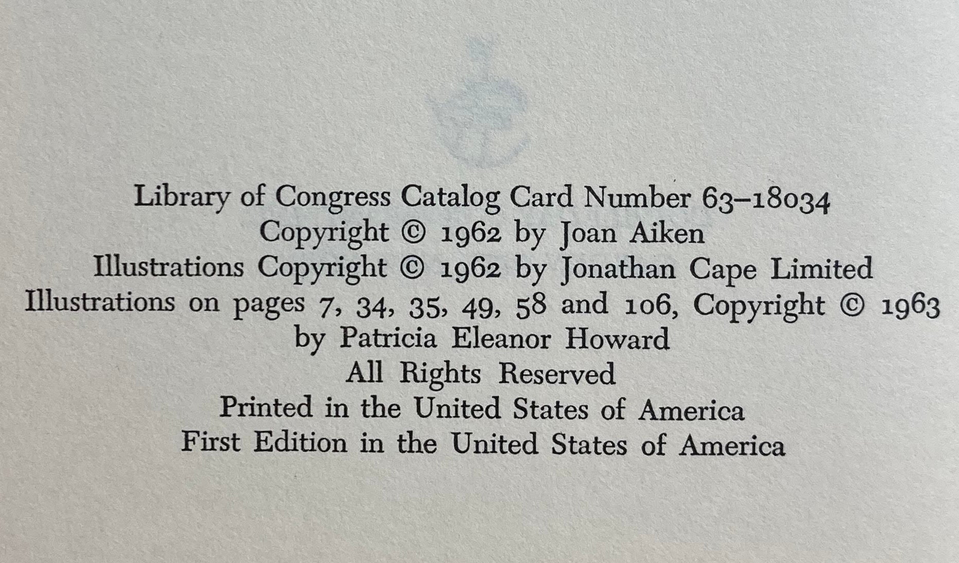 First US edition. The first book in Aiken’s beloved Wolves Chronicles AND the first appearance of the iconic Edward Gorey cover created for this American edition. Wicked wolves and a grim governess threaten Bonnie and her cousin Sylvia when Bonnie's parents leave Willoughby Chase for a sea voyage. Left in the care of the cruel Miss Slighcarp, the girls can hardly believe what is happening to their once happy home. The servants are dismissed, the furniture is sold, and Bonnie and Sylvia are sent to a prison-like orphan school. But Bonnie will not submit!